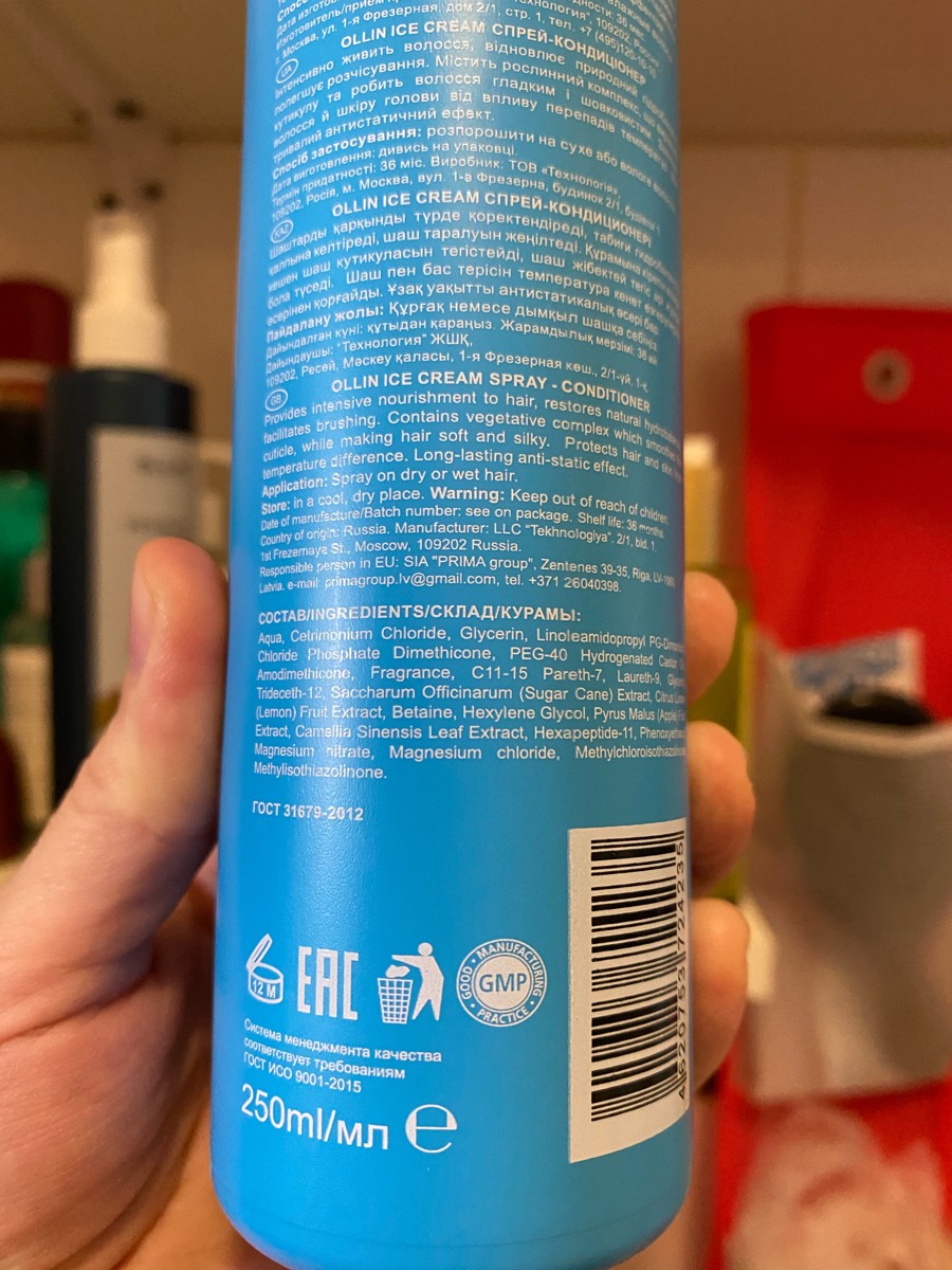 OLLIN PROFESSIONAL Спрей-кондиционер ICE CREAM для увлажнения и питания Antistatic Effect 250 мл