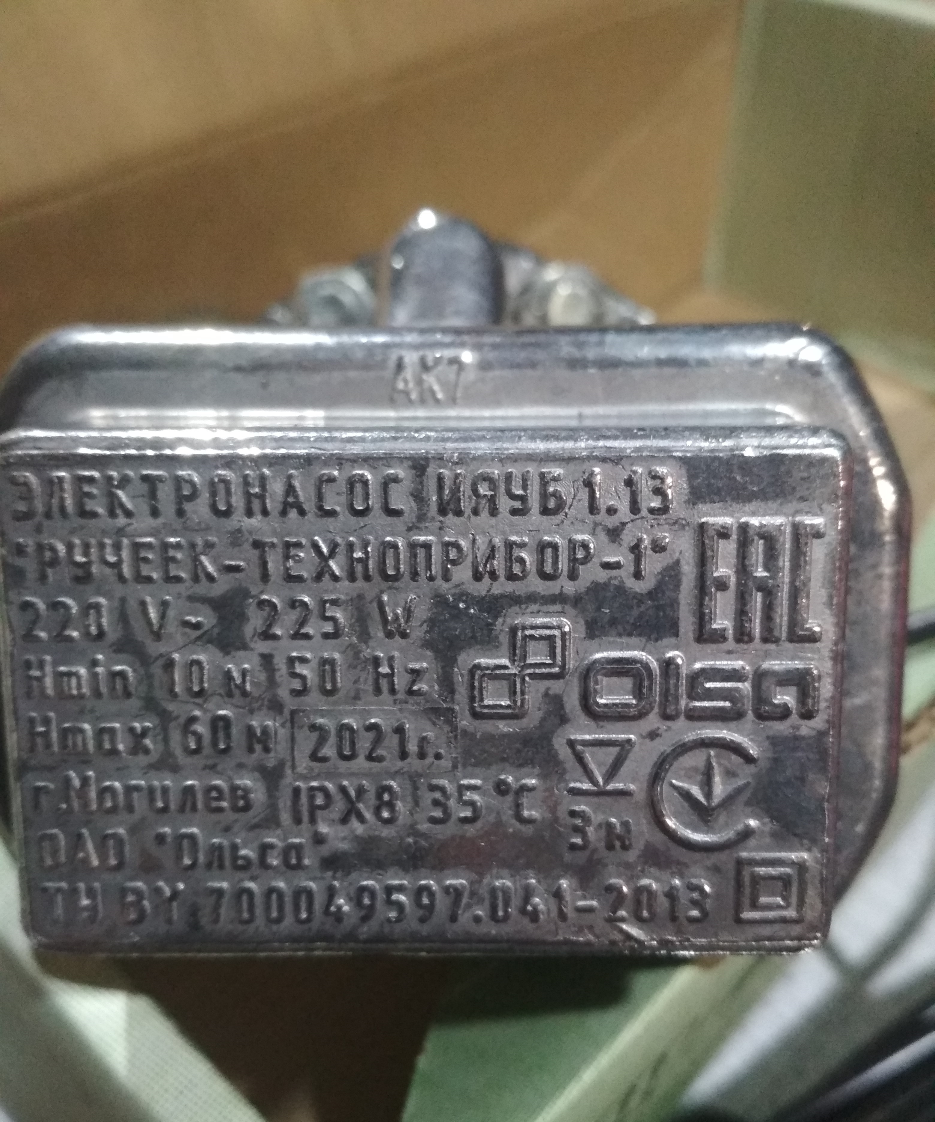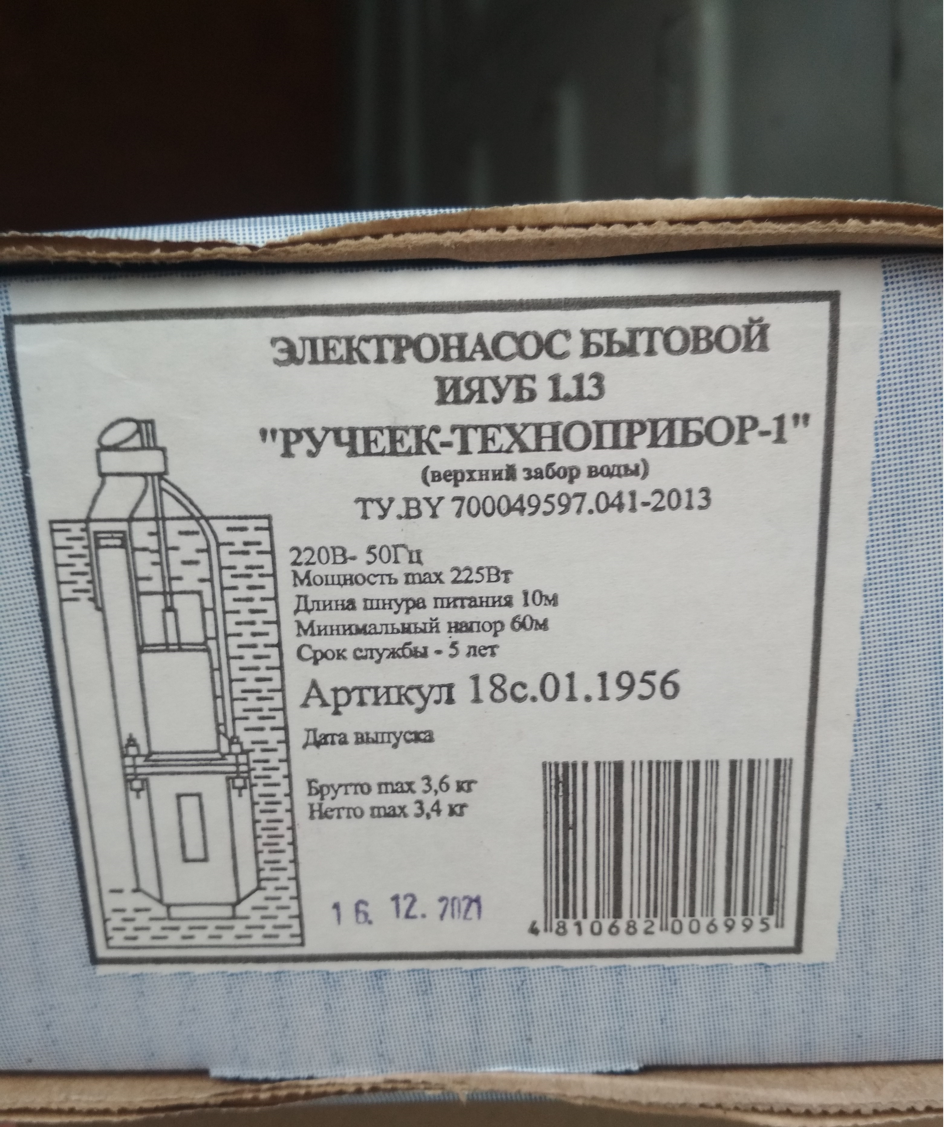 Насос погружной "Ручеек-1", 225 Вт, длина шнура 10 м, верхний забор