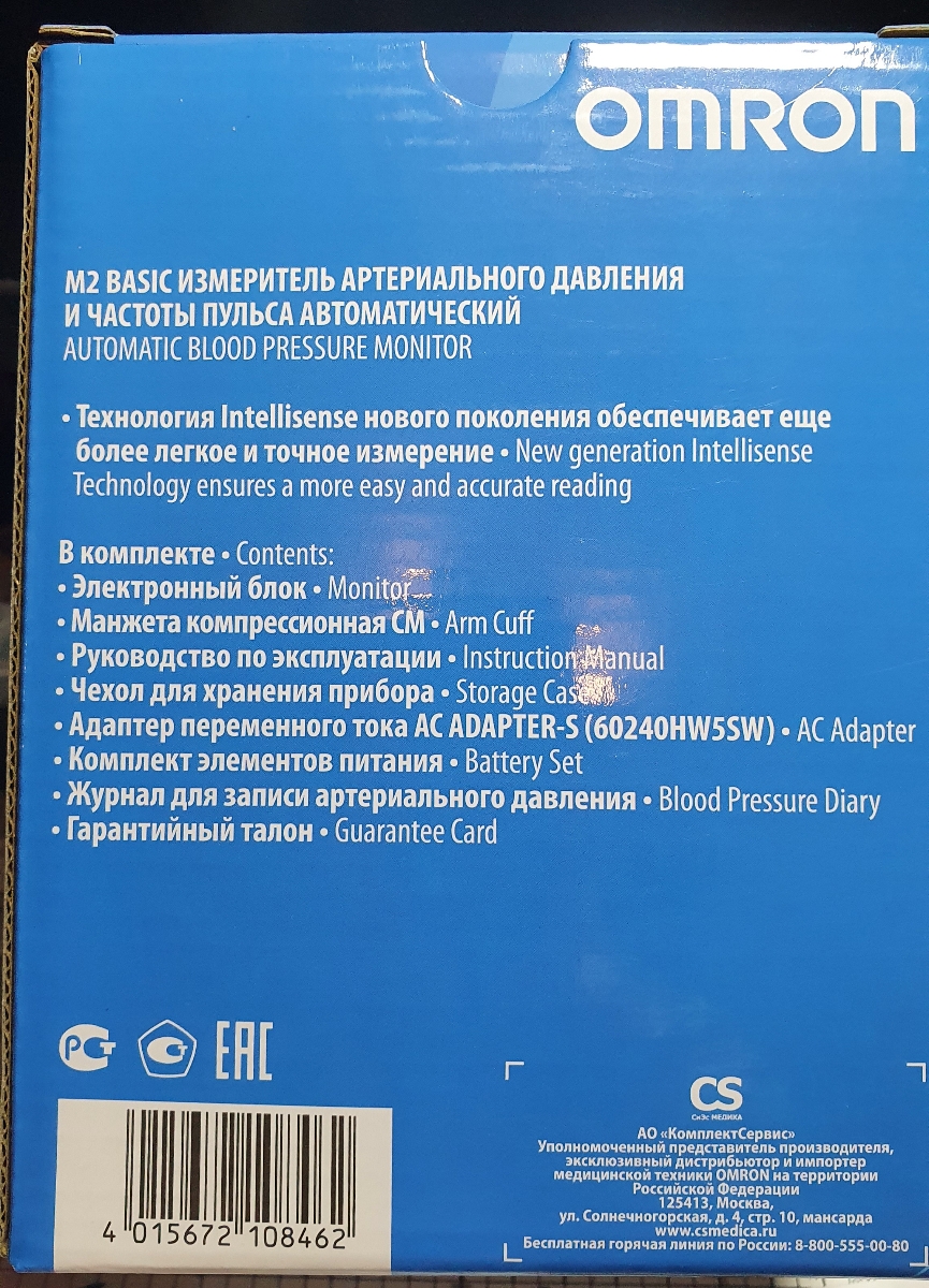 Тонометр Omron M2 Basic + адаптер, с технологией интеллектуального измерения Intellisense