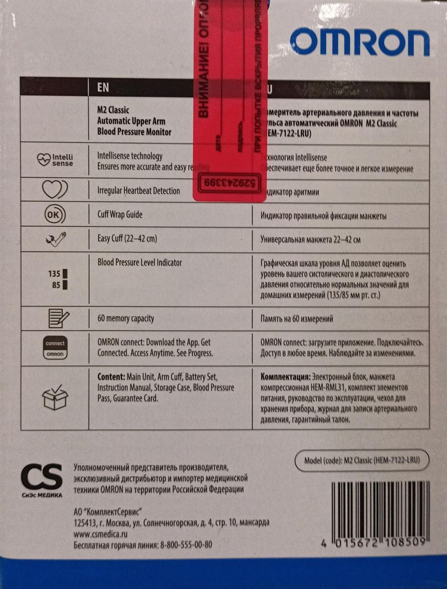 Тонометр OMRON M2 Classic (HEM-7122-LRU) Универсальная манжета. Уцененный товар
