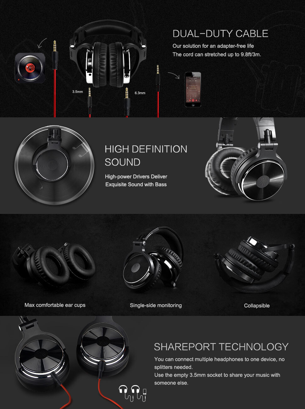 Проводные студийные DJ наушники OneOdio Studio Pro-10