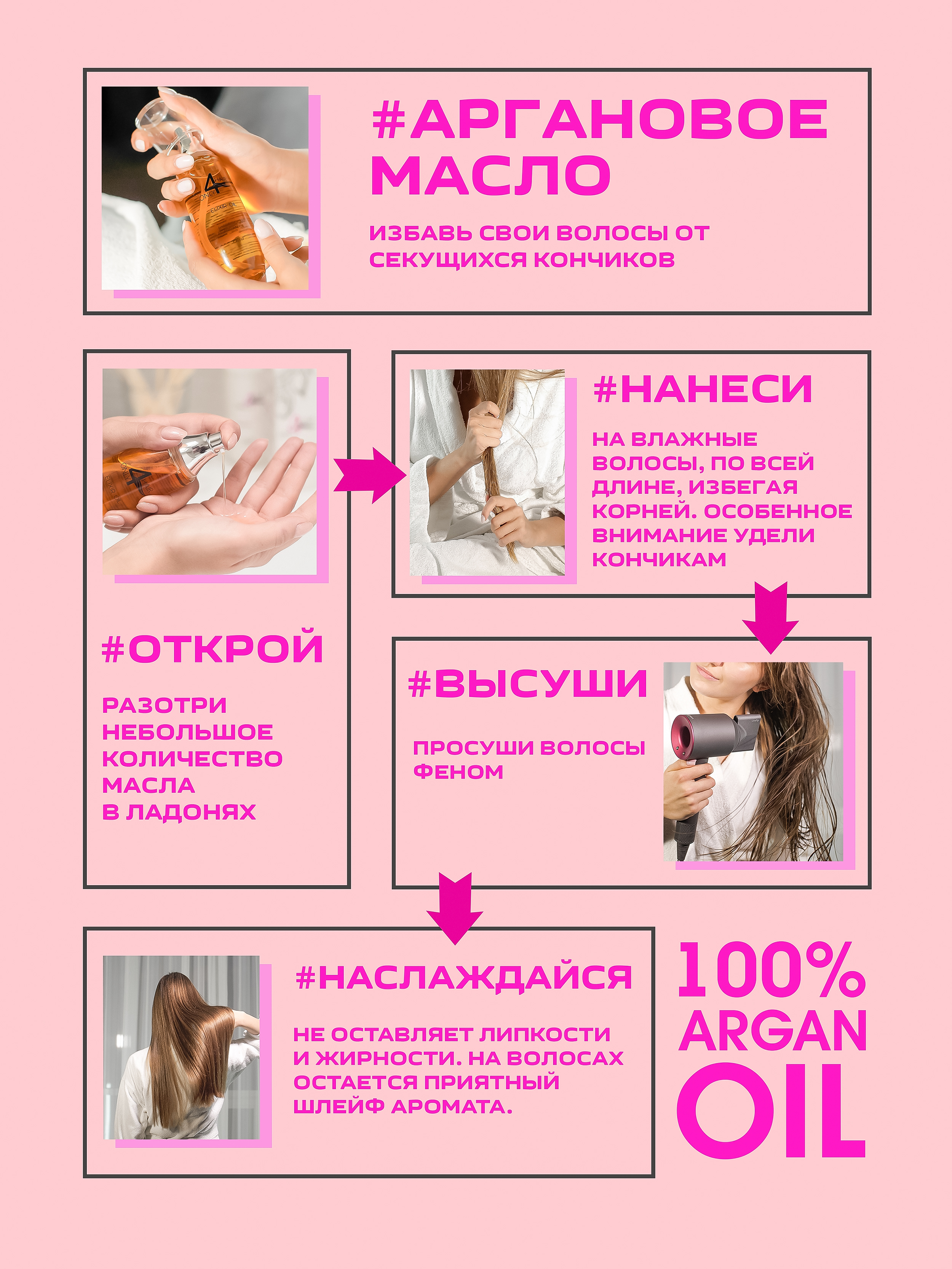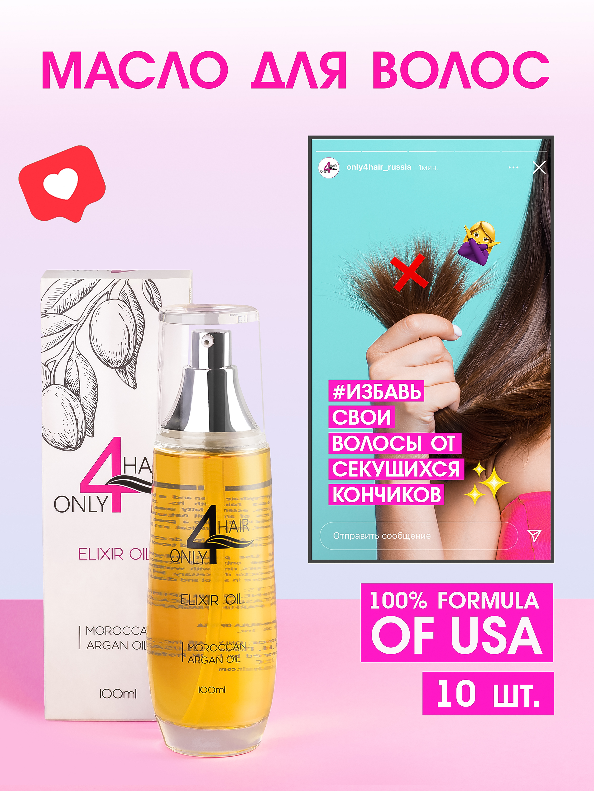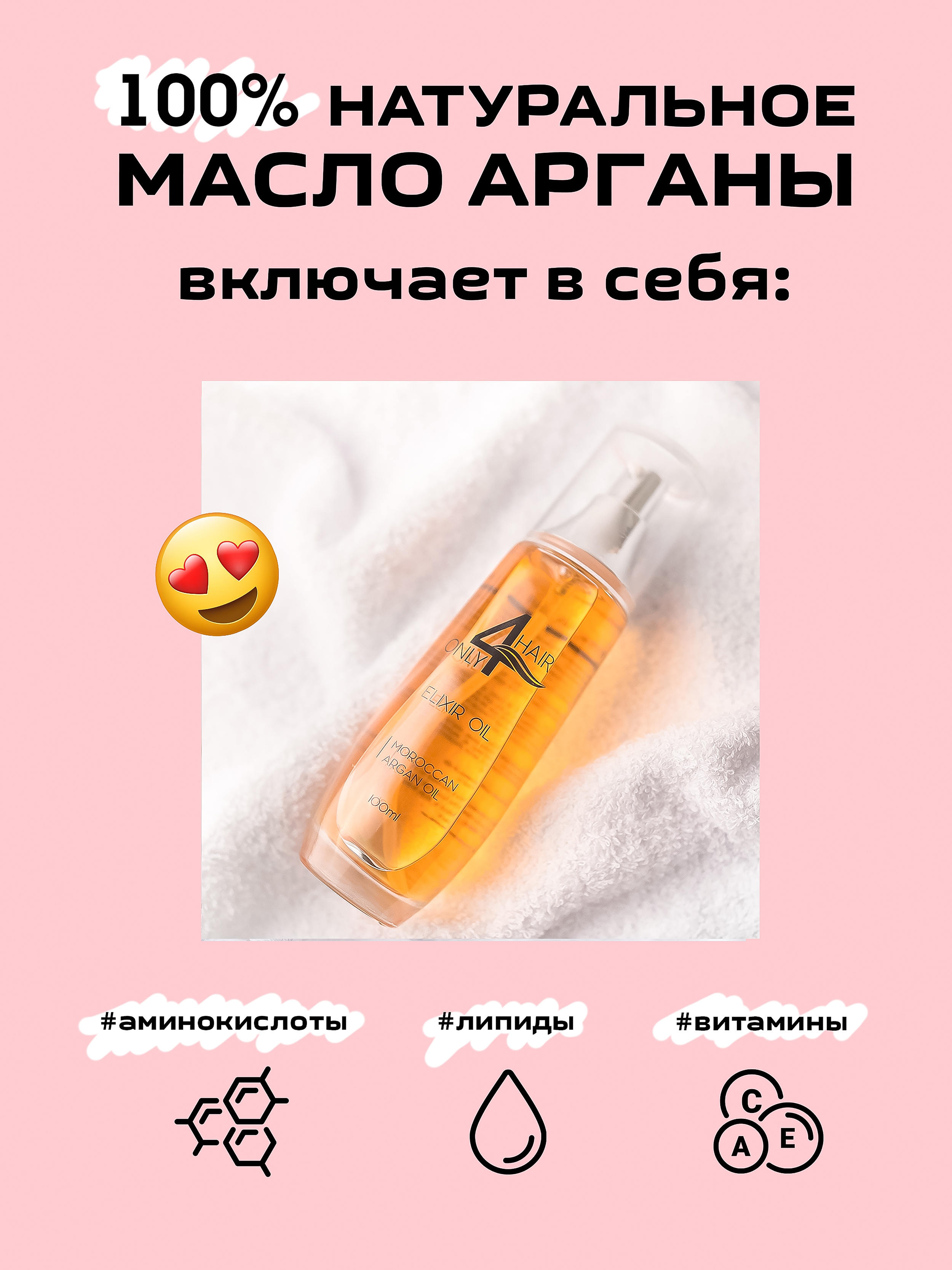 ONLY4HAIR / Масло Эликсир Арганы для увлажнения и восстановления блеска волос 100мл