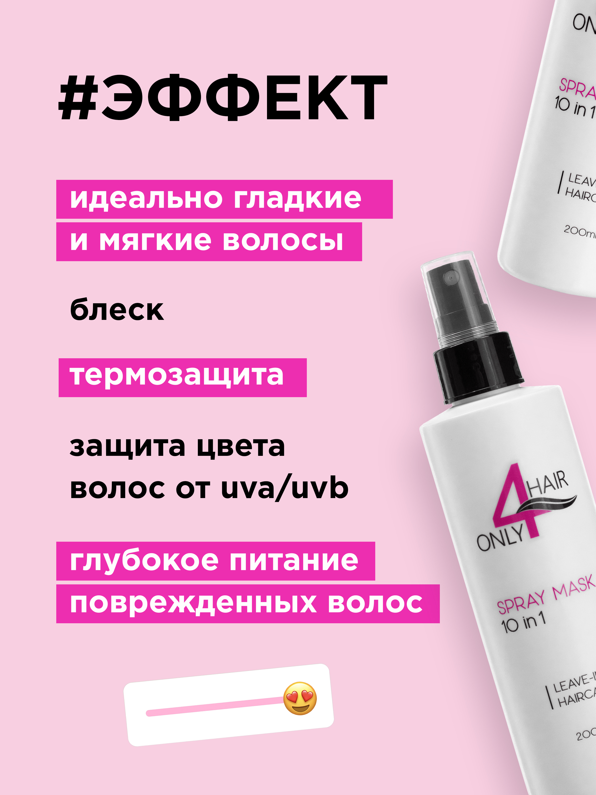 ONLY4HAIR / Многофункциональная несмываемая спрей-маска10 в 1 для всех типов волос 200мл.