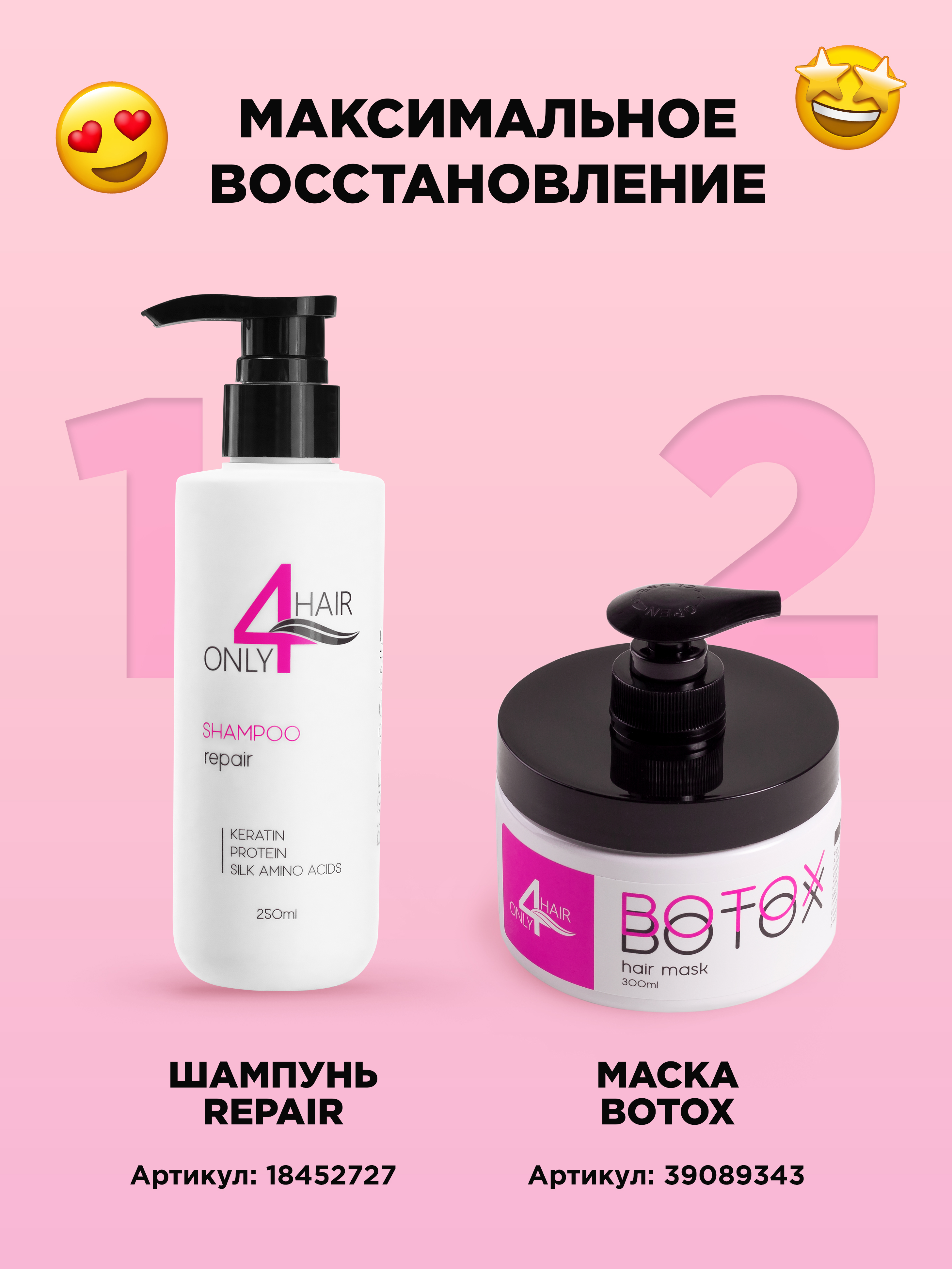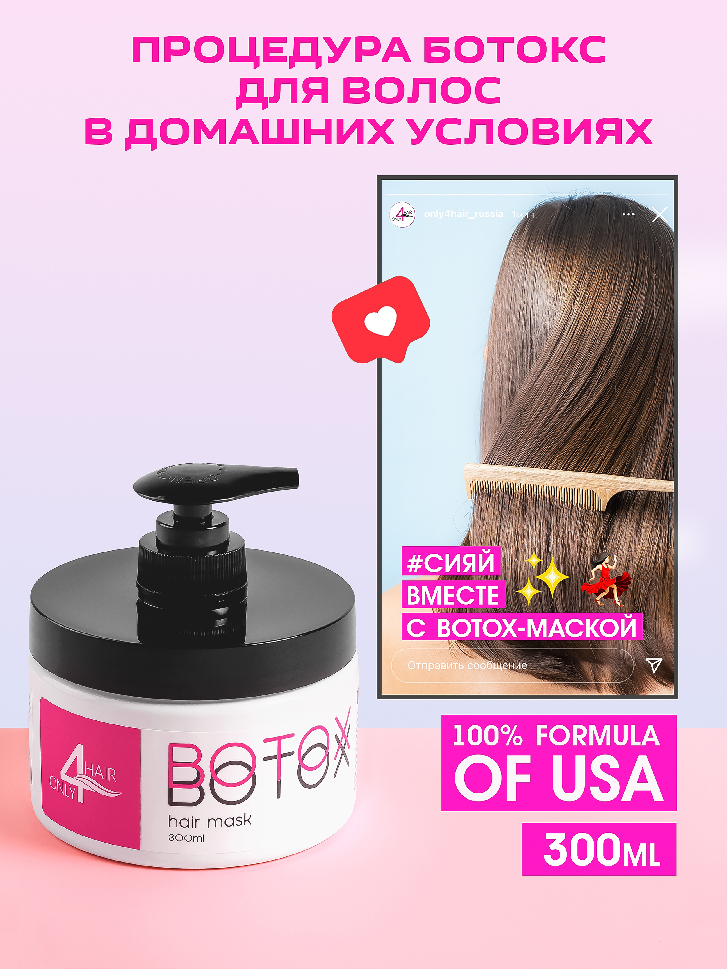 ONLY4HAIR Маска БОТОКС для восстановления волос с кератином / профессиональная маска для волос 300мл