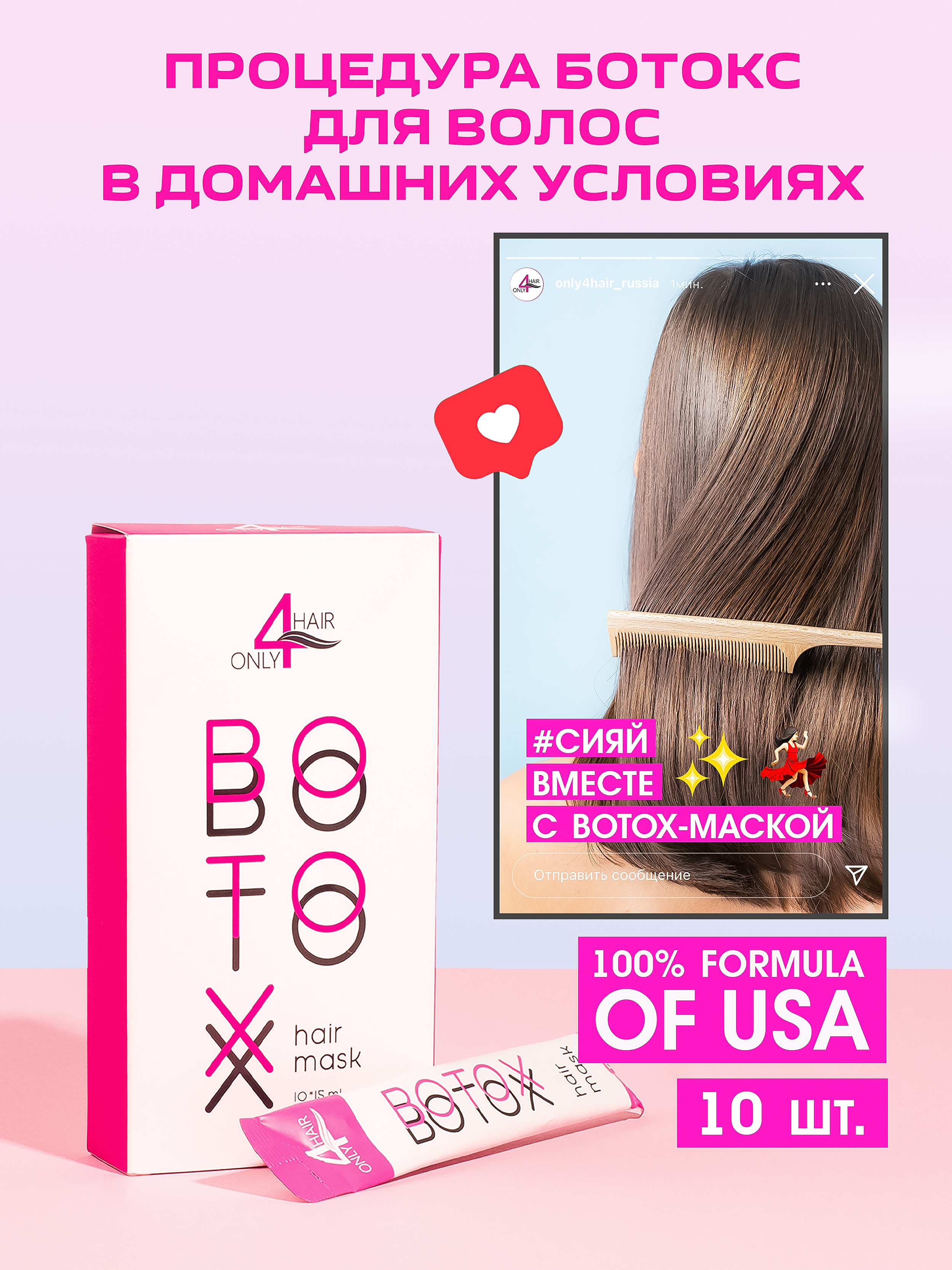 ONLY4HAIR Маска БОТОКС для восстановления волос с кератином - профессиональная косметика 15мл * 10шт