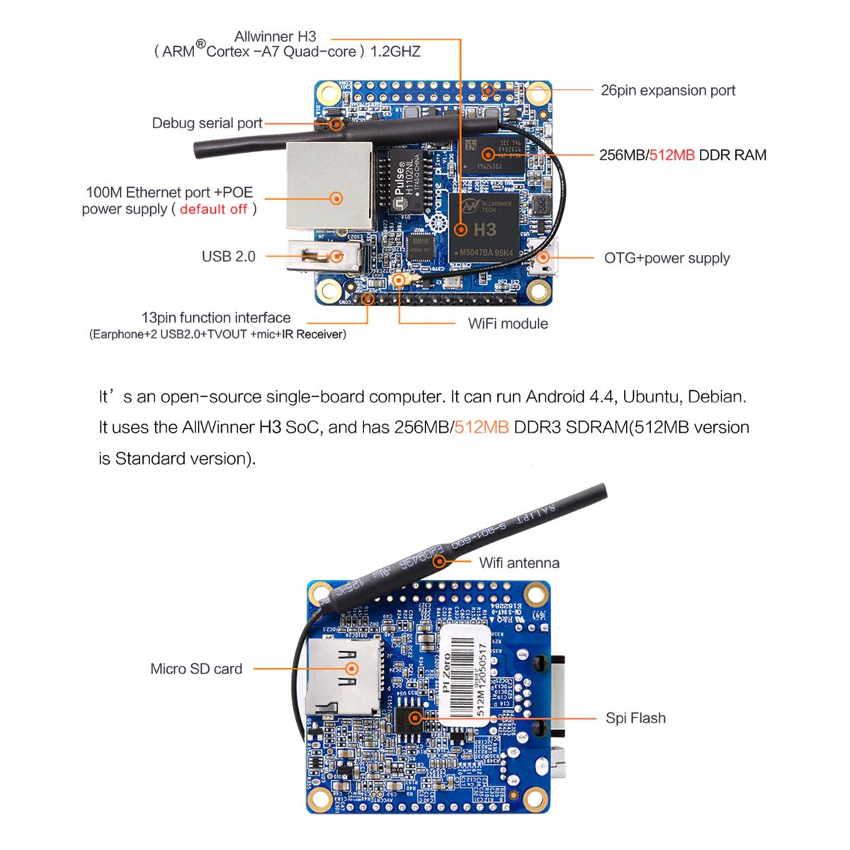Микрокомпьютер Orange Pi Zero, H3, 512 Mb, LAN, WiFi, USB