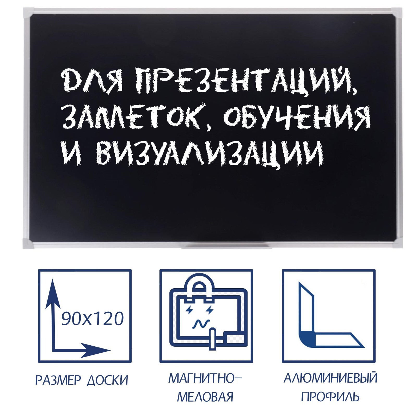 Доска магнитно-меловая, 90*120 см, в алюминиевой рамке, с полочкой