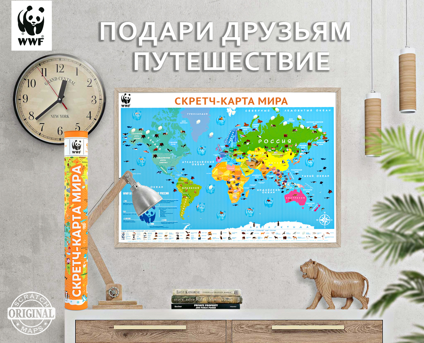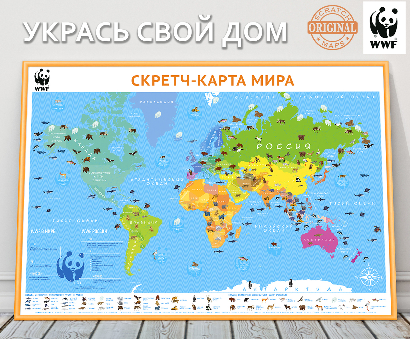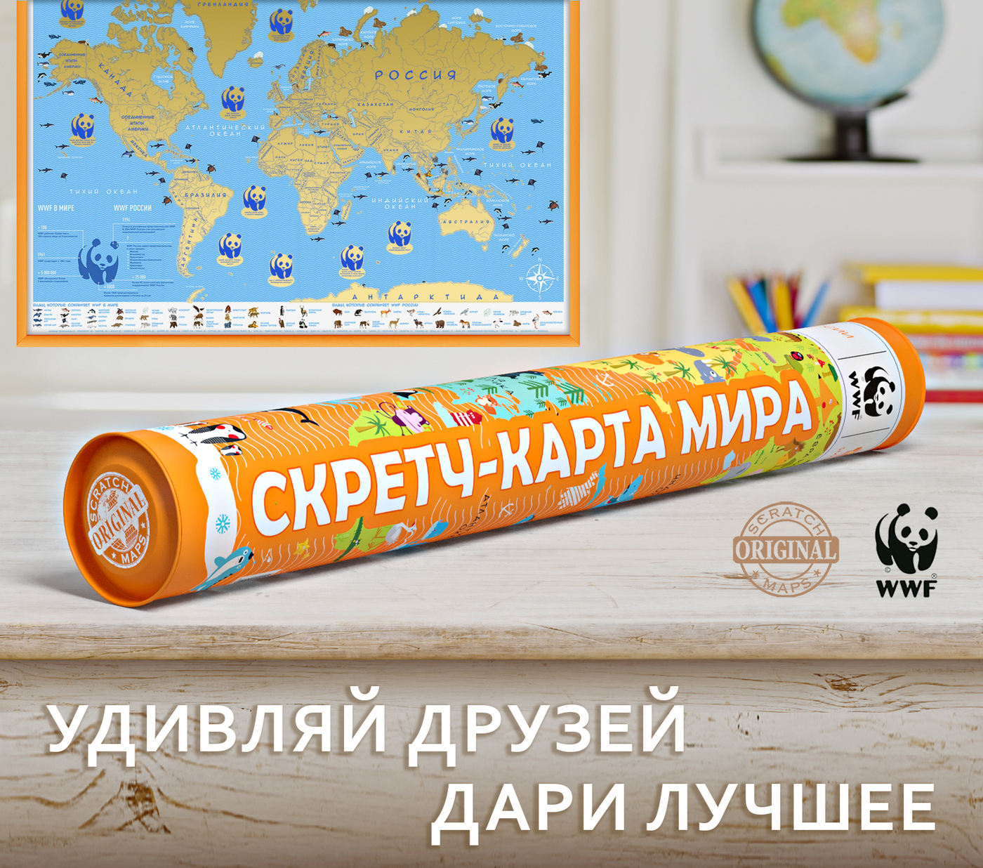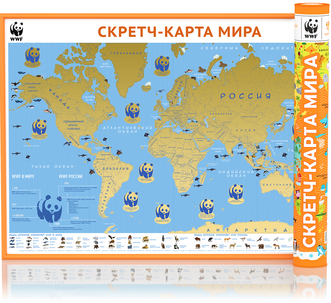 Новогодняя серия. Самая большая Скретч-карта мира "WWF ORIGINAL" Оранж, в подарочном тубусе.
