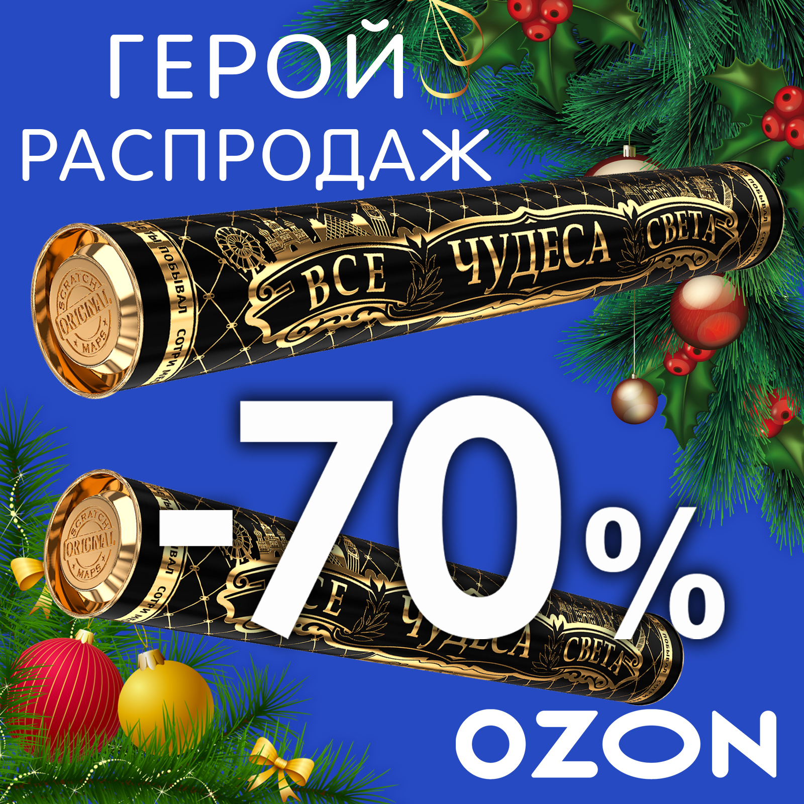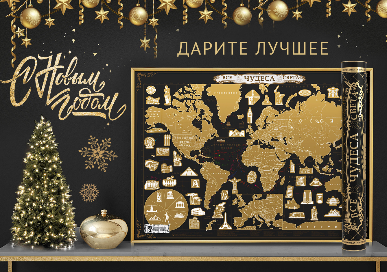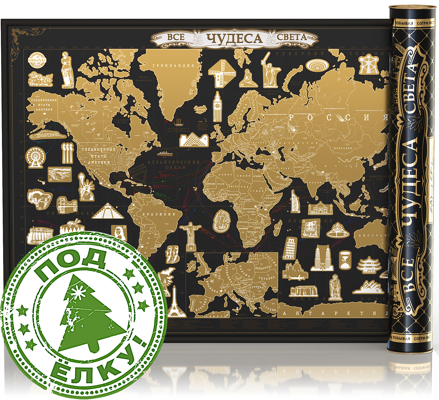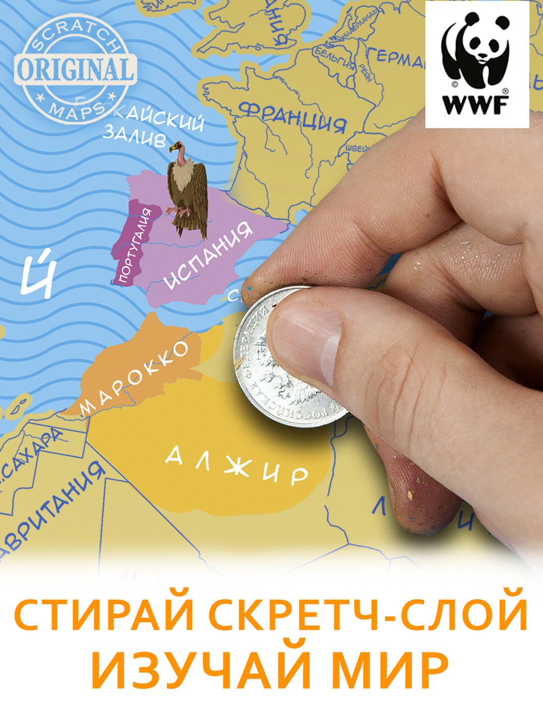 Новогодняя серия. Самая большая Скретч-карта мира "WWF ORIGINAL" Оранж, в подарочном тубусе.
