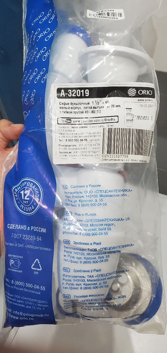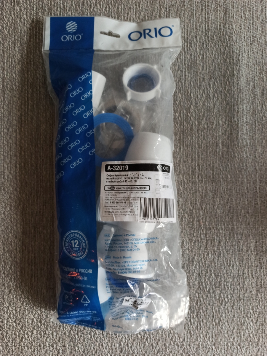 ORIO S-41059 Сифон прямоточный 1 1/2"х40, с одним отводом и гибкой трубой 40-40/50