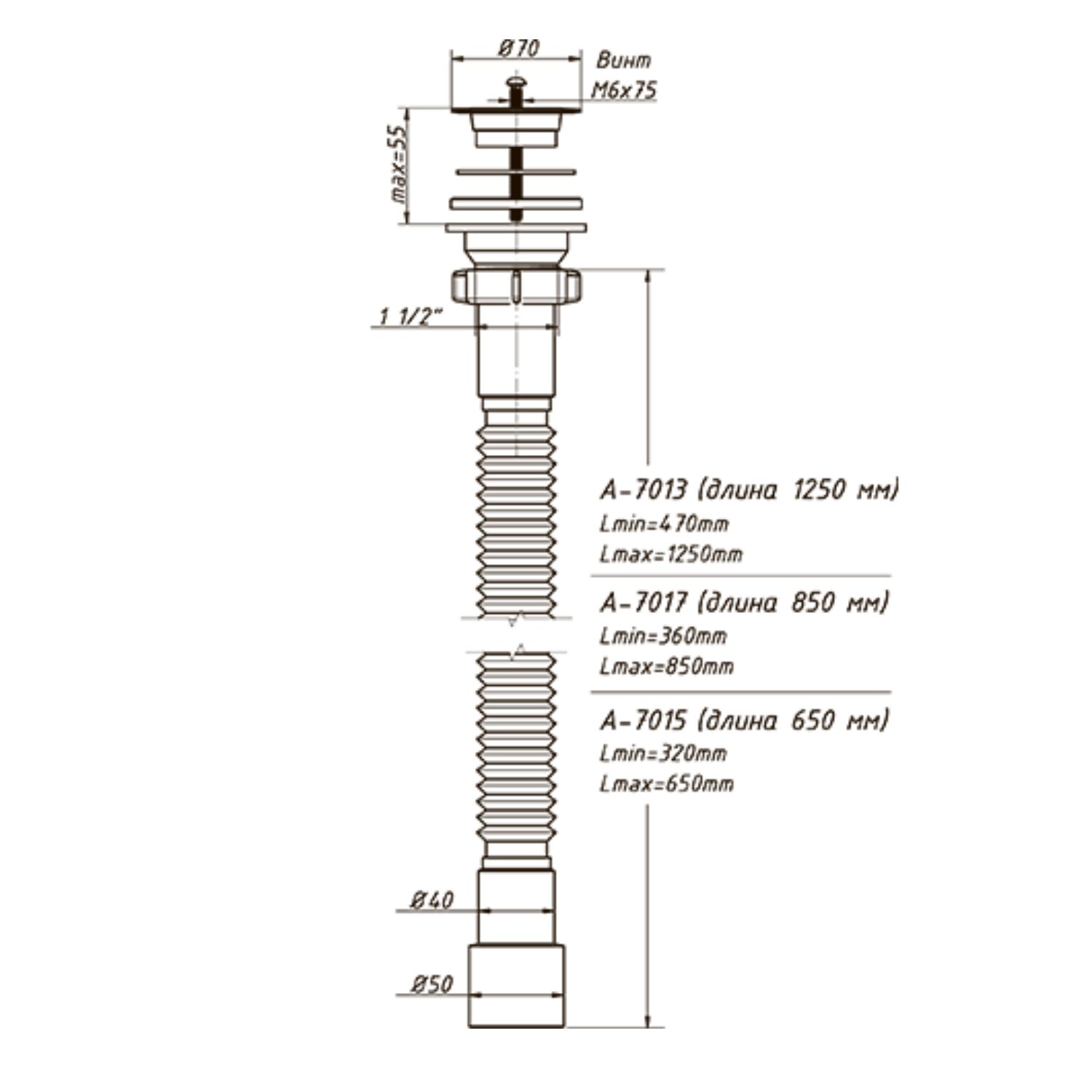 ORIO А-7013 Гибкая труба 1 1/2"х 40/50 мм с выпуском, длина 1250мм