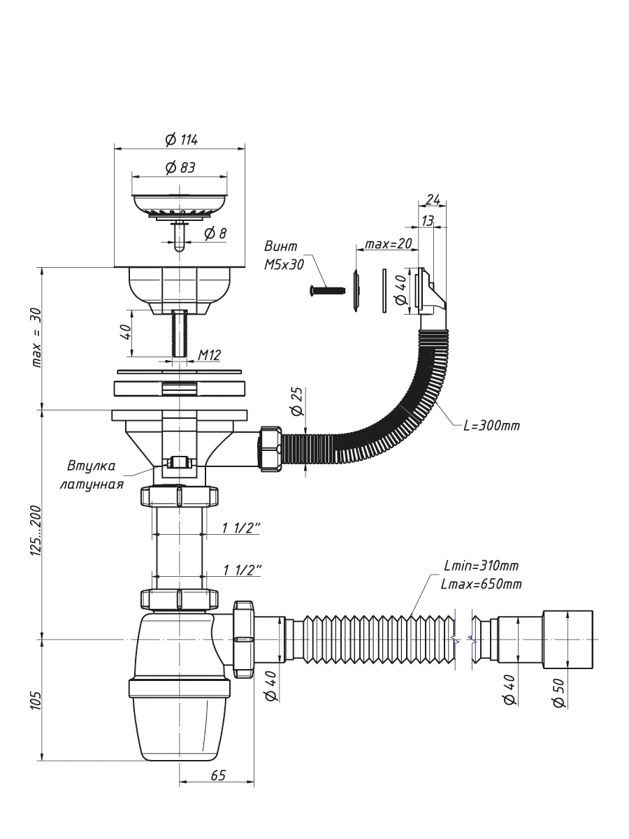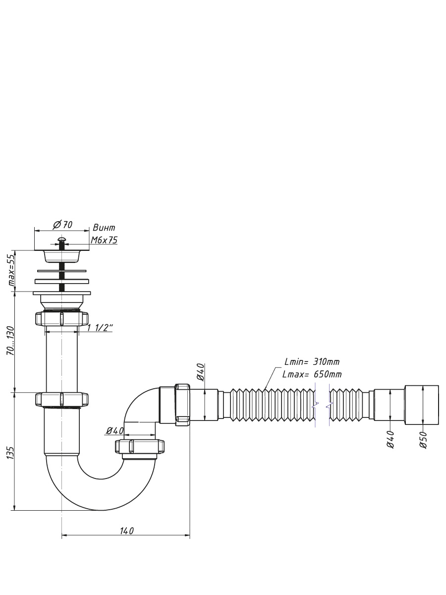 Сифон ORIO А-80089 для ванны 1 1/2 х 40 регулируемый
