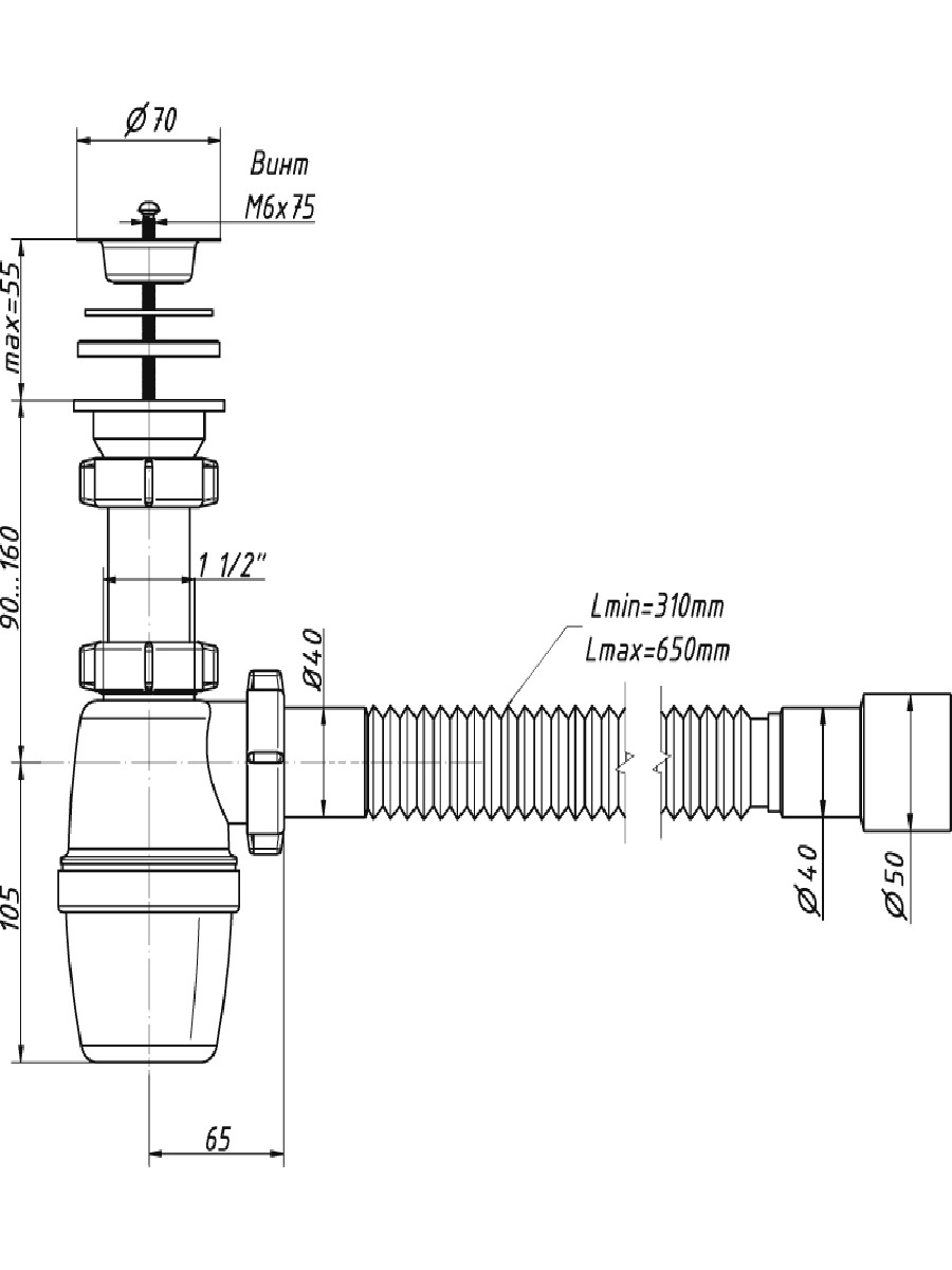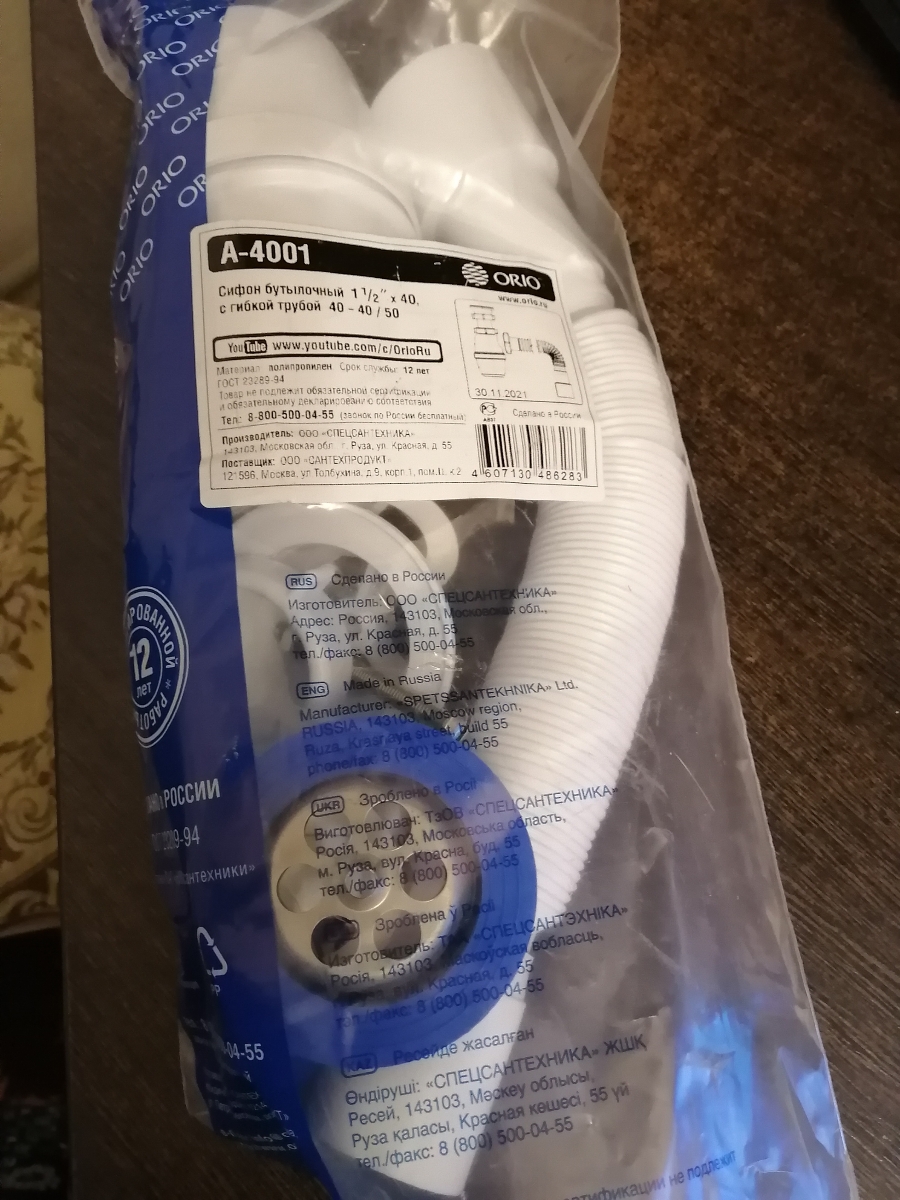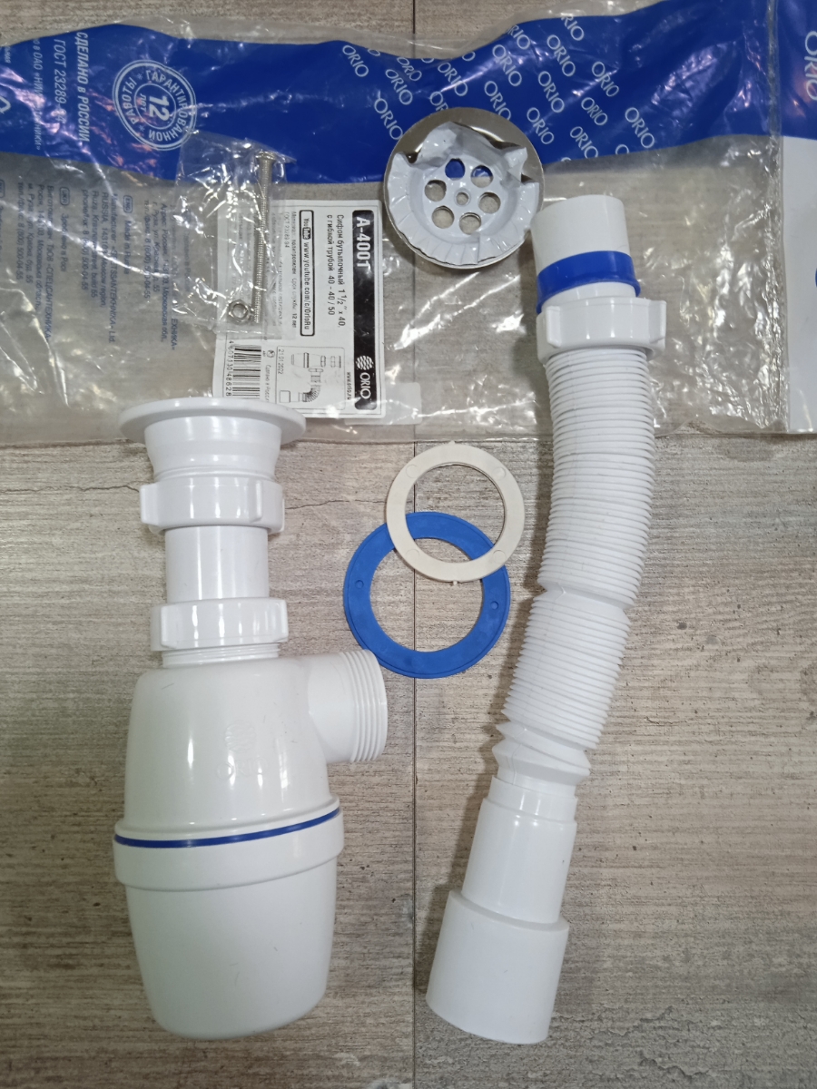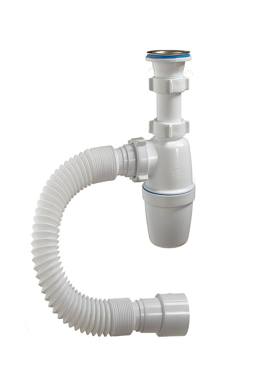 Сифон с выпуском, переливом Orio 1 1/2х40 мм, с гибкой трубой