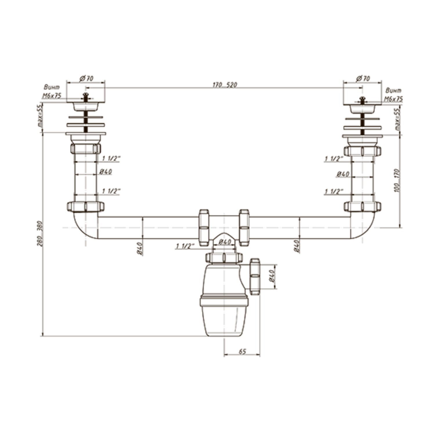 ORIO А-4009 Сифон двойной бутылочный двухуровневый 1 1/2"х40мм