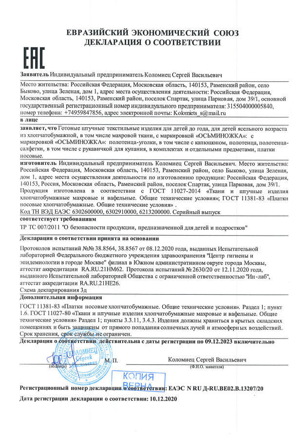 Пеленка текстильная Осьминожка , Хлопок