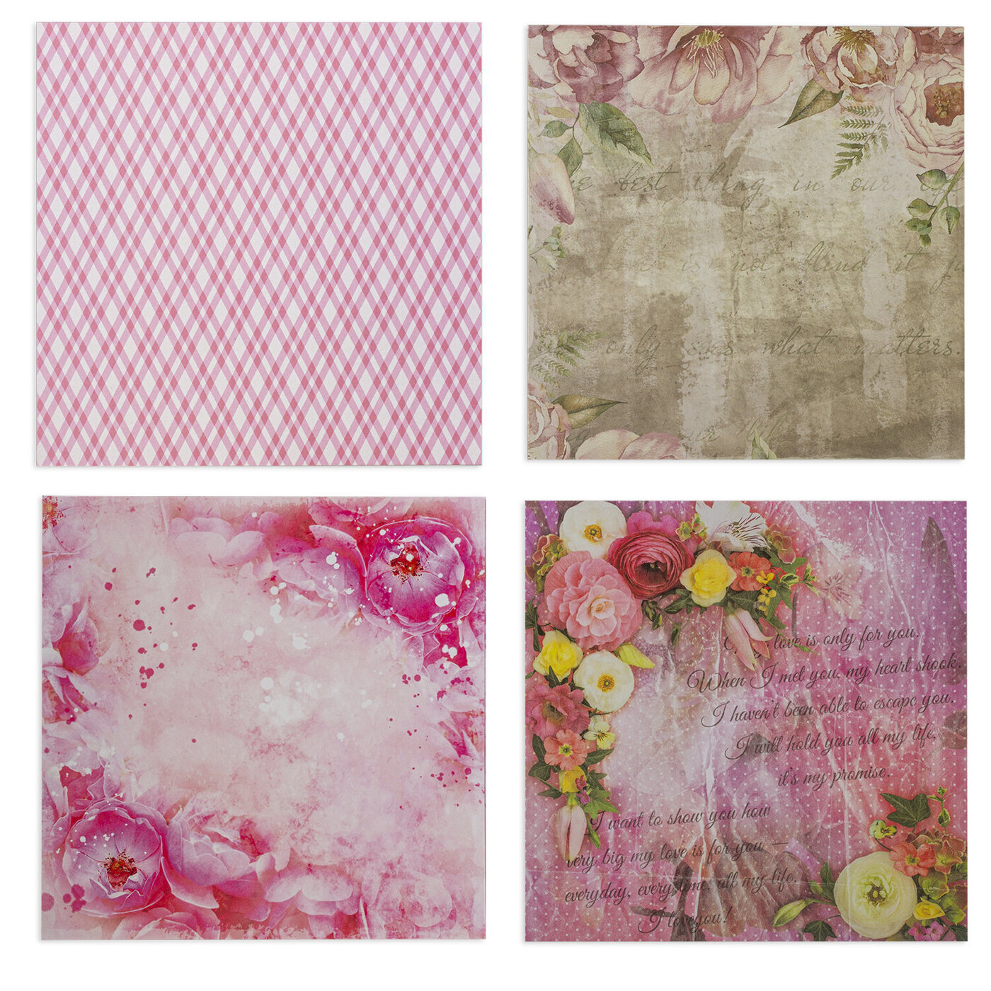 Бумага для скрапбукинга 15х15 см Шебби-шик, двусторонняя, 12 листов, 12 дизайнов, 180 г/м2, Остров Сокровищ