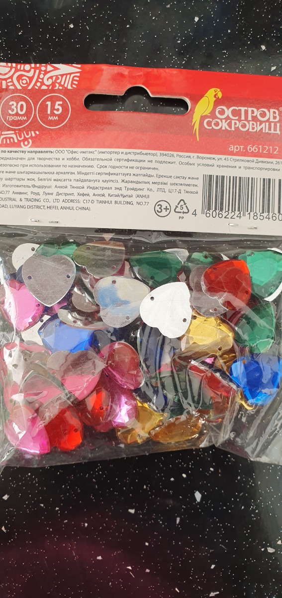 Стразы для творчества Сердце, цвет ассорти, 23х25 мм, 30 грамм, Остров Сокровищ