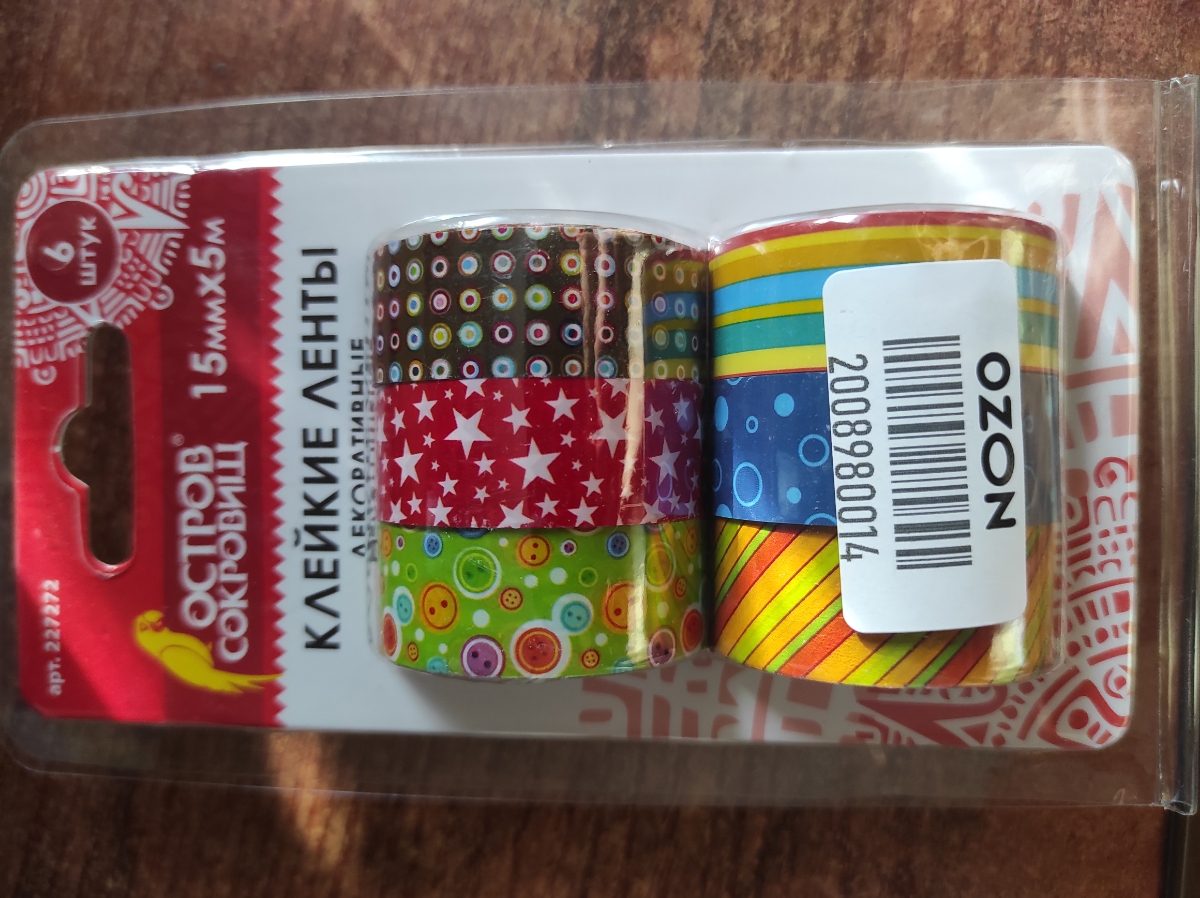 Клейкая лента (скотч) декоративная Остров сокровищ (15мм x 5м, набор расцветок №1) 6шт. (227270)