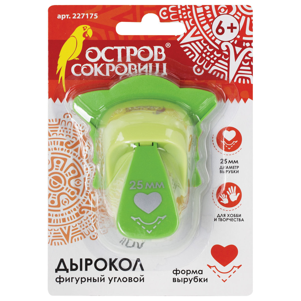 Дырокол фигурный угловой "Сердце", диаметр вырезной фигуры 25 мм, Остров сокровищ