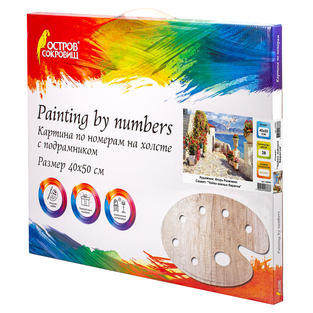 Картина по номерам 40х50 см, Остров Сокровищ Чайки южных берегов, подрамник, акрил, кисти