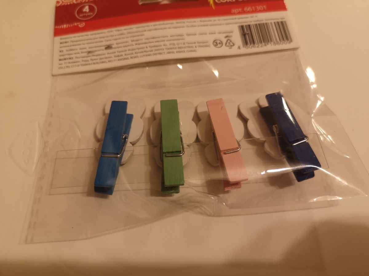 Прищепки декоративные Зайчики, 4 штук, 3,5 см, ассорти, Остров сокровищ, 661301