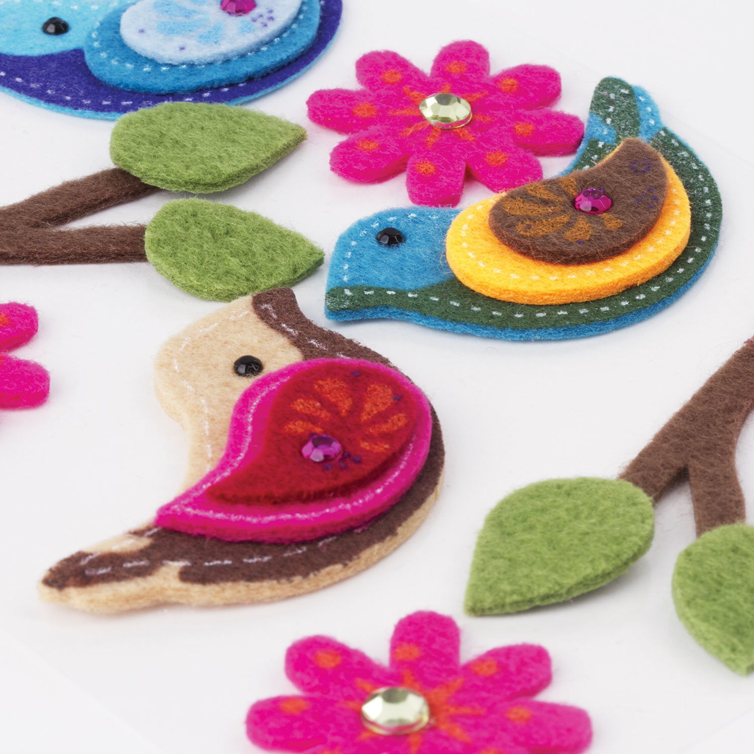 Наклейки из фетра Птички, 11 шт., ассорти, Остров Сокровищ