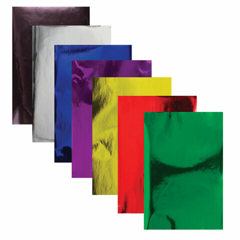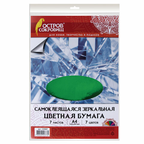 Цветная бумага А4 ЗЕРКАЛЬНАЯ САМОКЛЕЯЩАЯСЯ, 7 листов 7 цветов, 80 г/м2, ОСТРОВ СОКРОВИЩ, 129887