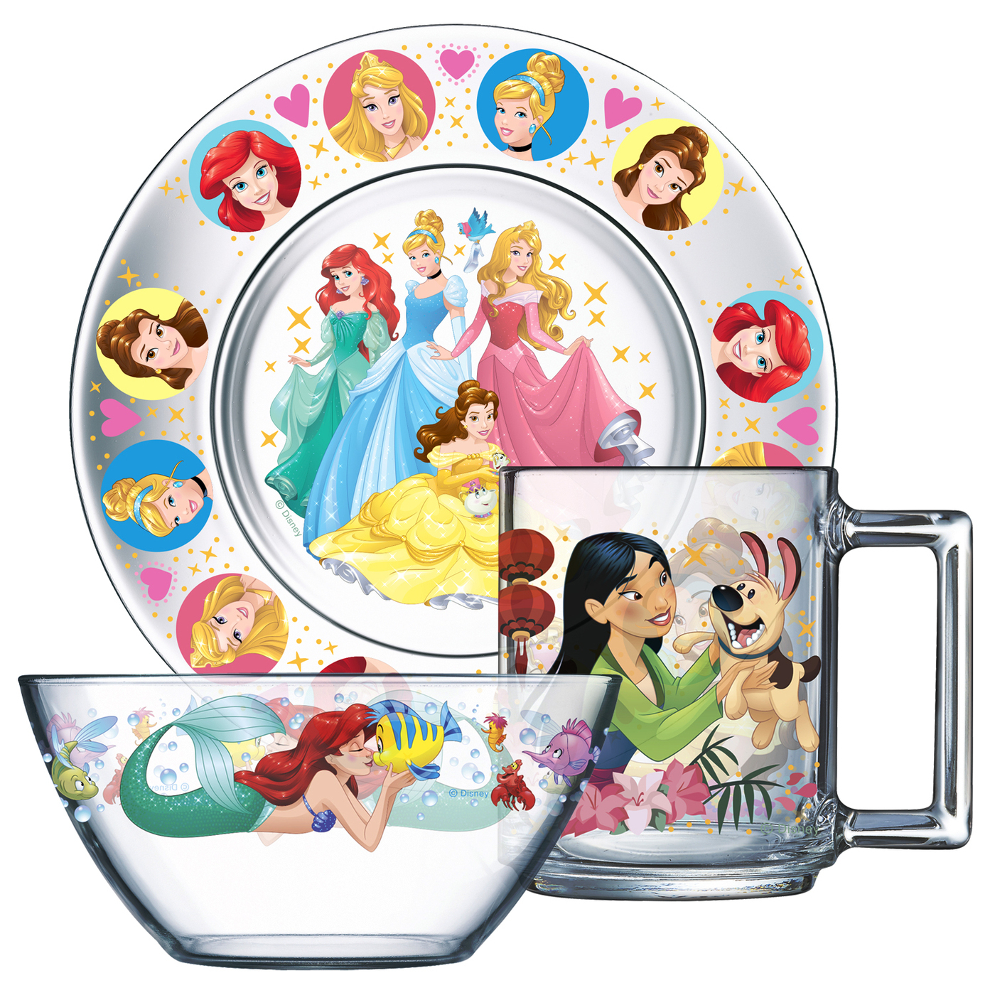 Набор детской посуды ОСЗ. Дисней Принцессы, 3 предмета, стекло