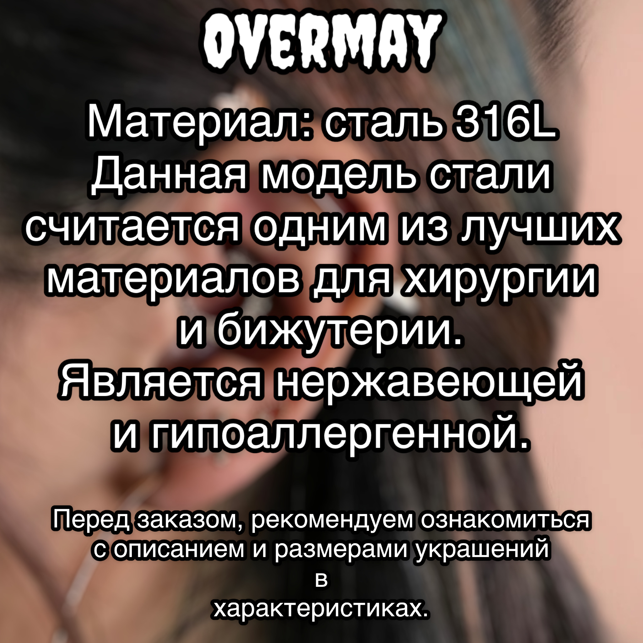 Пирсинг в ухо, серьги пусеты, плаги, моносерьга 10мм, 2 штуки
