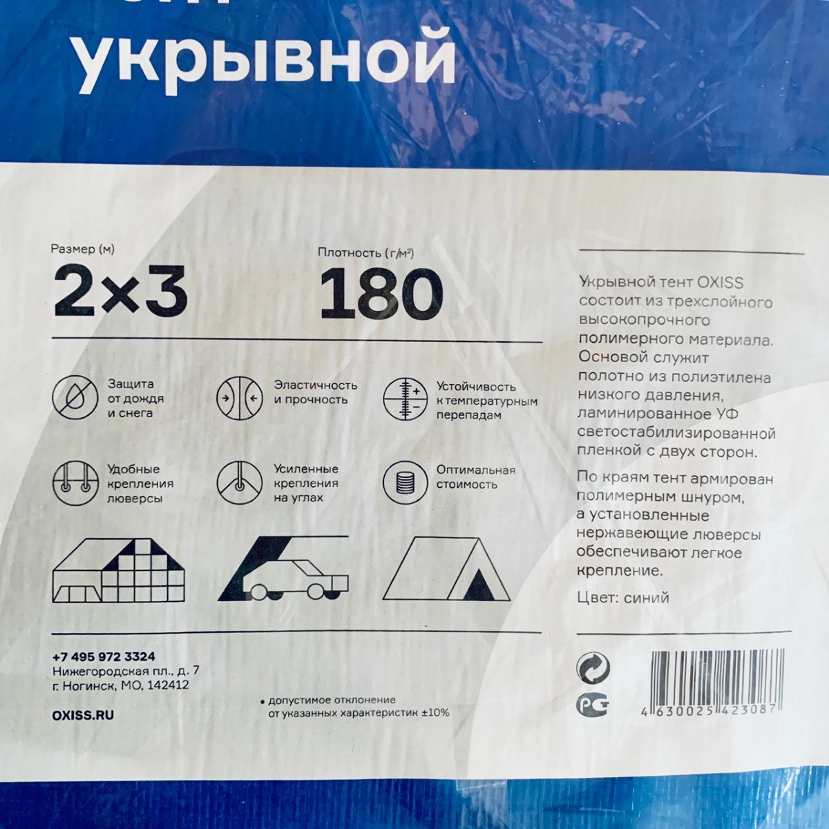 Тент универсальный с люверсами (2 м х 3 м), плотность 180 г/м2, УФ-стабилизация - 3 года, водонепроницаемый