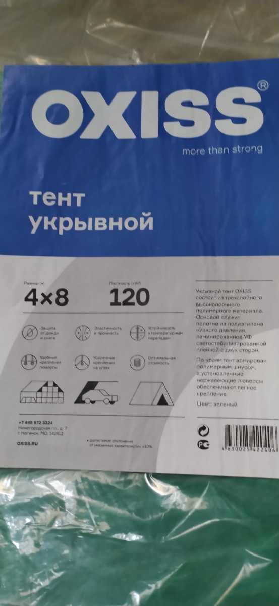 Тент универсальный с люверсами (4 м х 8 м), плотность 120 г/м2, УФ-стабилизация - 2 года, водонепроницаемый