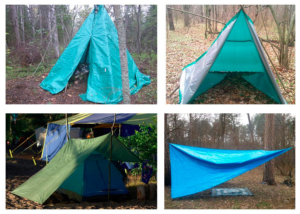 Тент универсальный с люверсами зеленый (4 м х 5 м), плотность 70 г/м2, водонепроницаемый