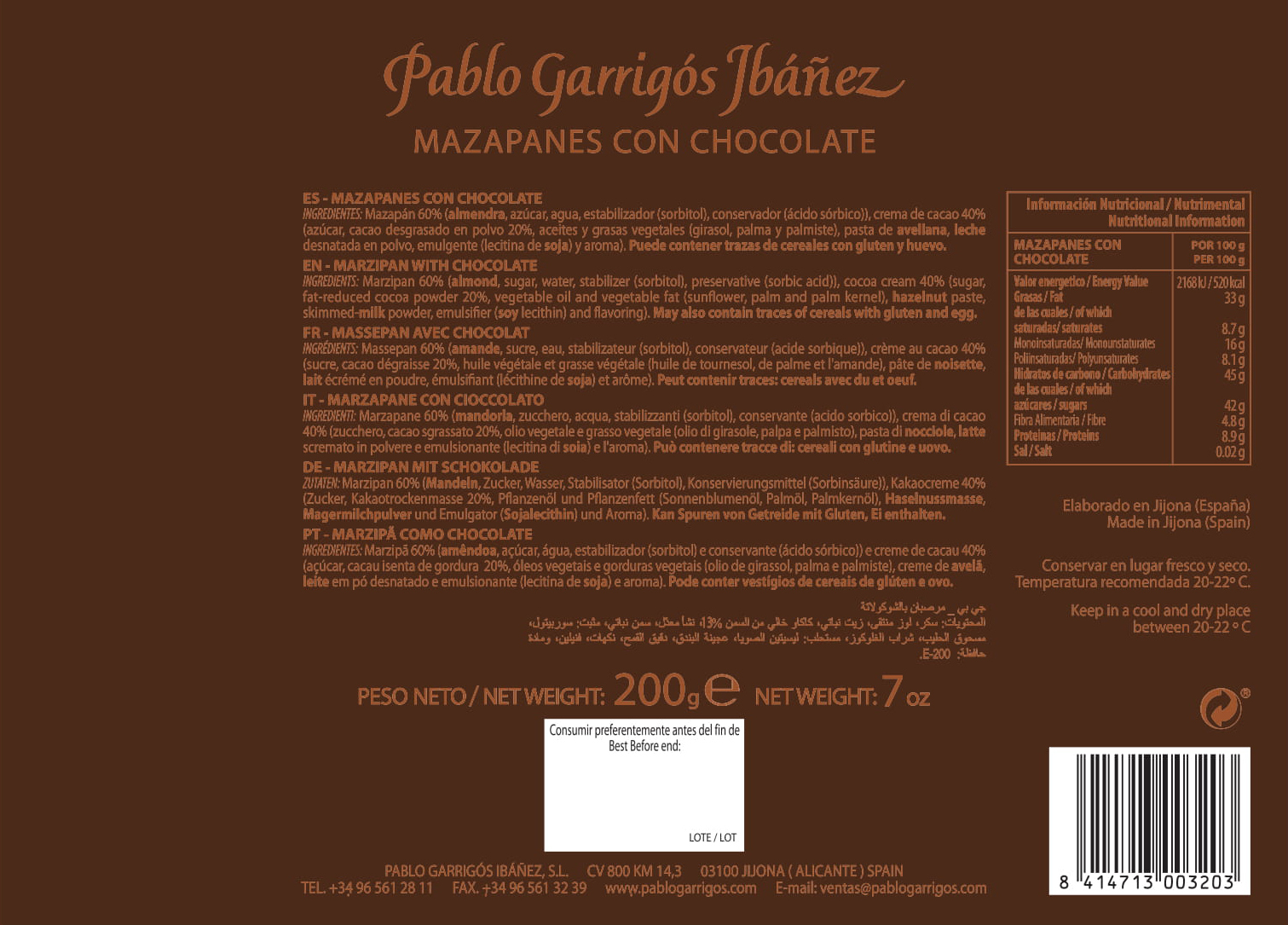 Марципан с шоколадом Pablo Garrigos Ibanez, 200 г, Испания