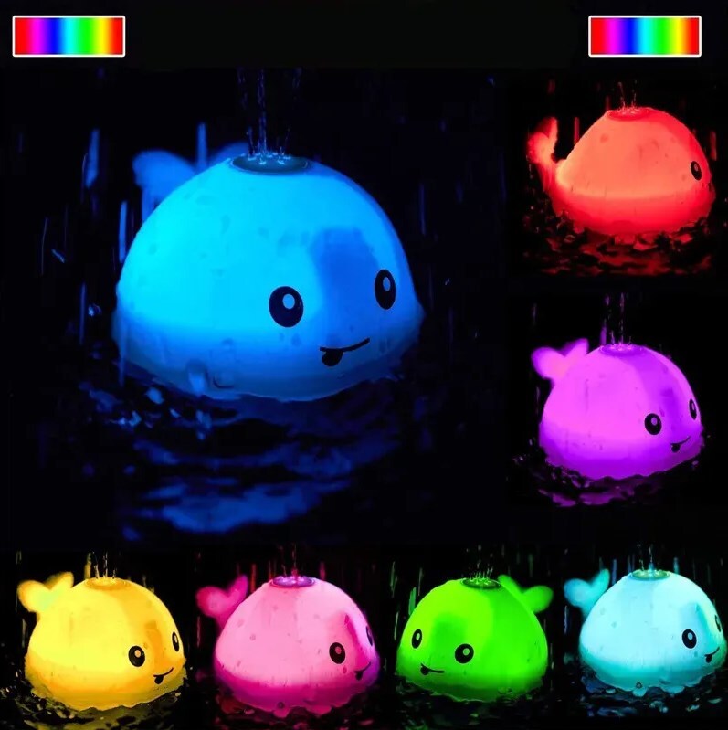 Игрушка для купания Кит фонтан с подсветкой / Кит игрушка для ванной с фонтаном светящийся