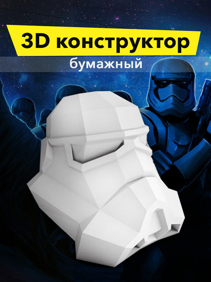 3D конструктор бумажный "Шлем" белый, оригами papercraft собери сам