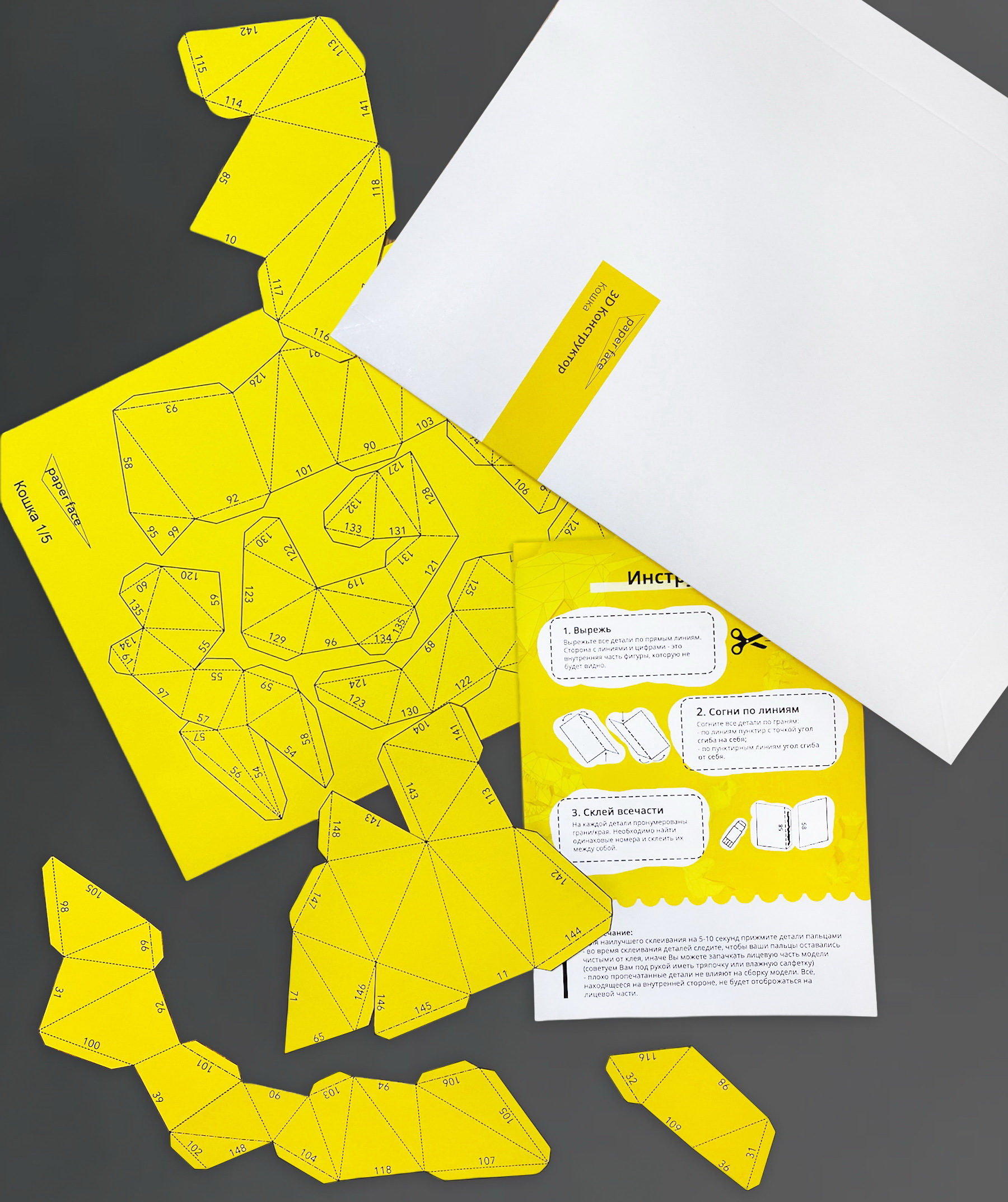 3D конструктор из бумаги "Собака бульдог" желтый, бумажный оригами собери сам, papercraft для детей и взрослых