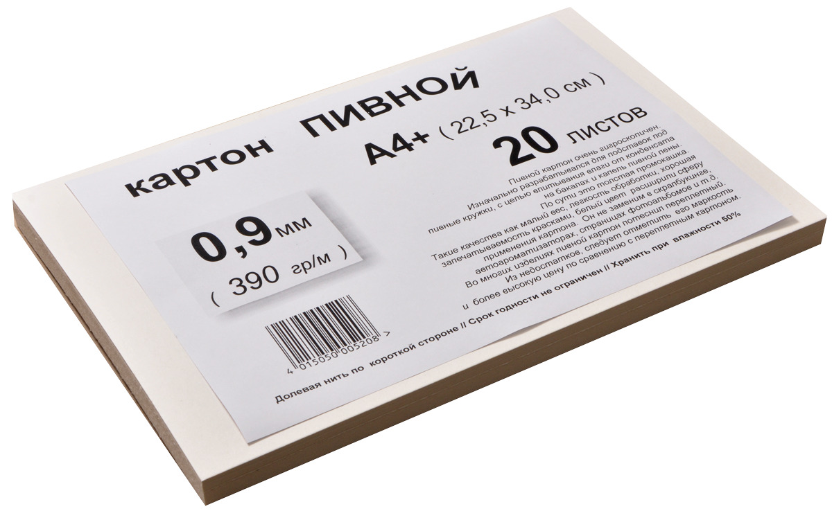Картон пивной 0,9мм, A4+ (22,5х34,0см), 20листов
