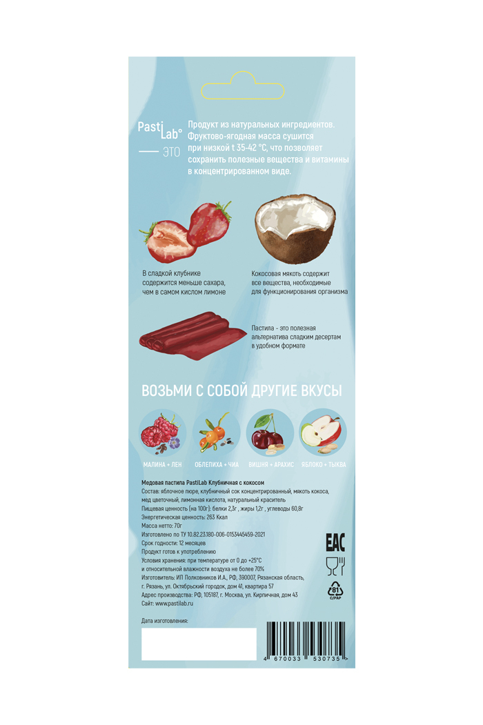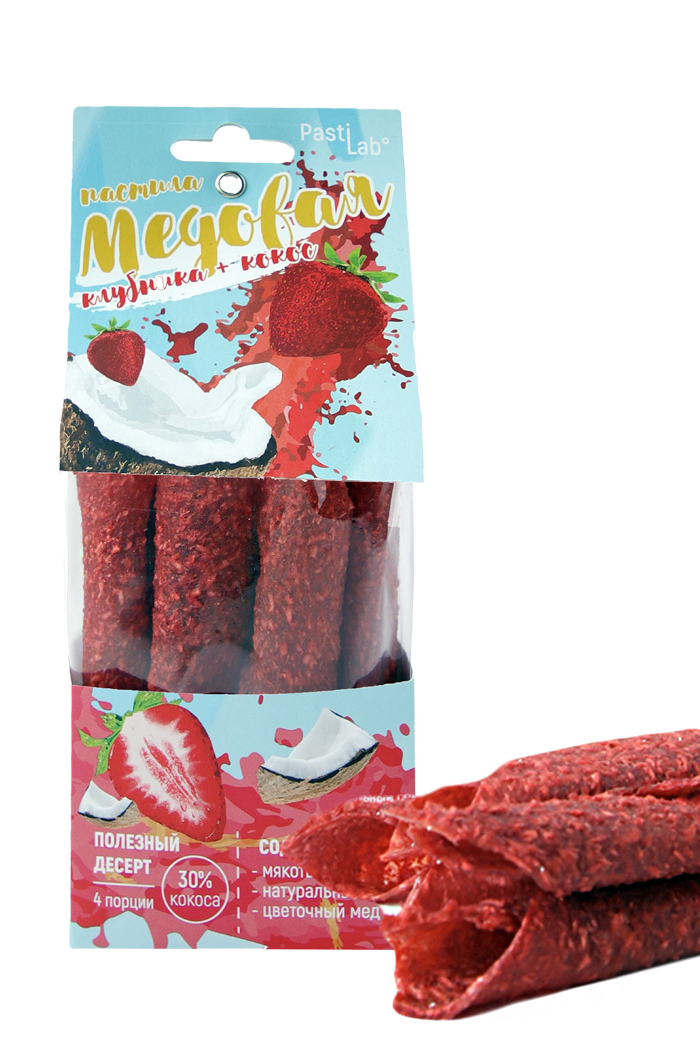 Пастила без сахара КЛУБНИЧНАЯ С КОКОСОМ медовая ягодная, натуральная, смоква, полезный перекус