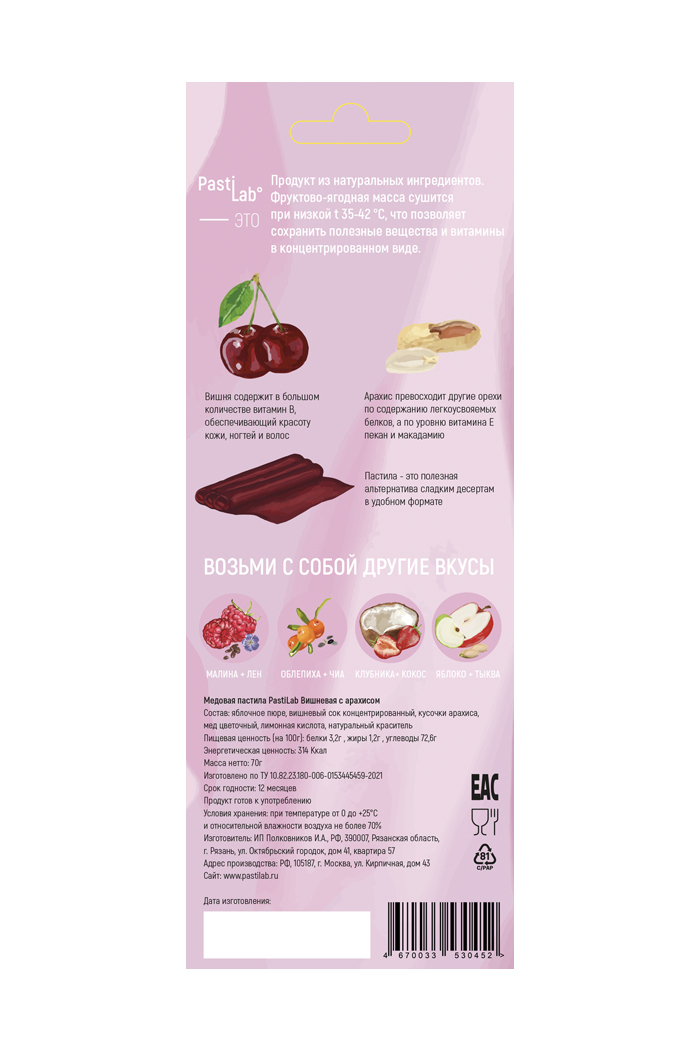 Пастила ВИШНЕВАЯ С АРАХИСОМ без сахара фруктовая, натуральный десерт, смоква, мармелад, подарок