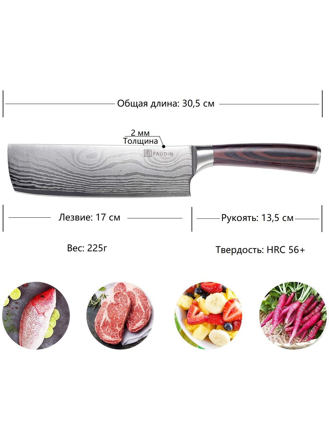 Кухонный нож для мяса, для овощей и фруктов Paudin Pro, длина лезвия 17 см