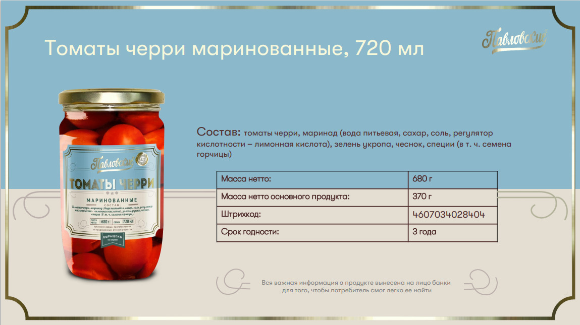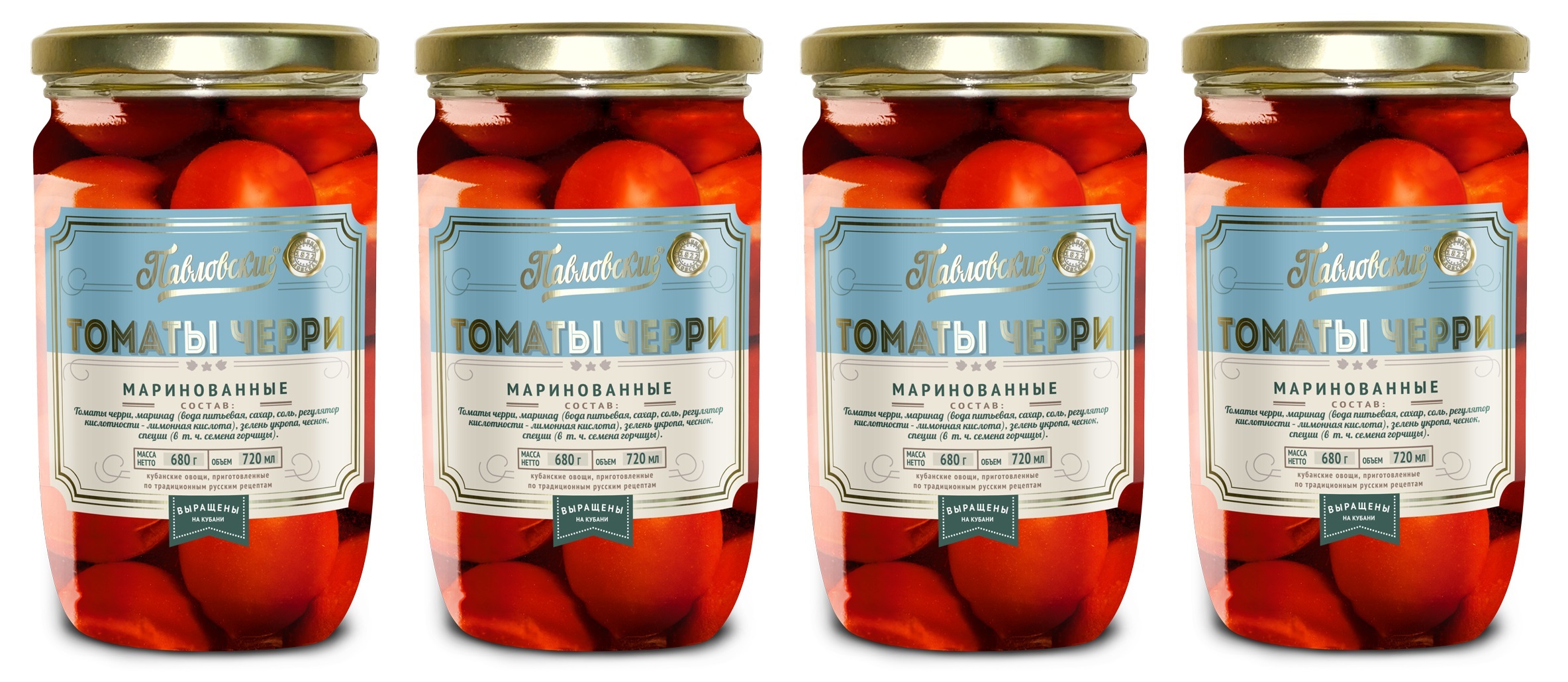 Томаты Черри маринованные Павловские 720 мл (Набор из 4 шт)