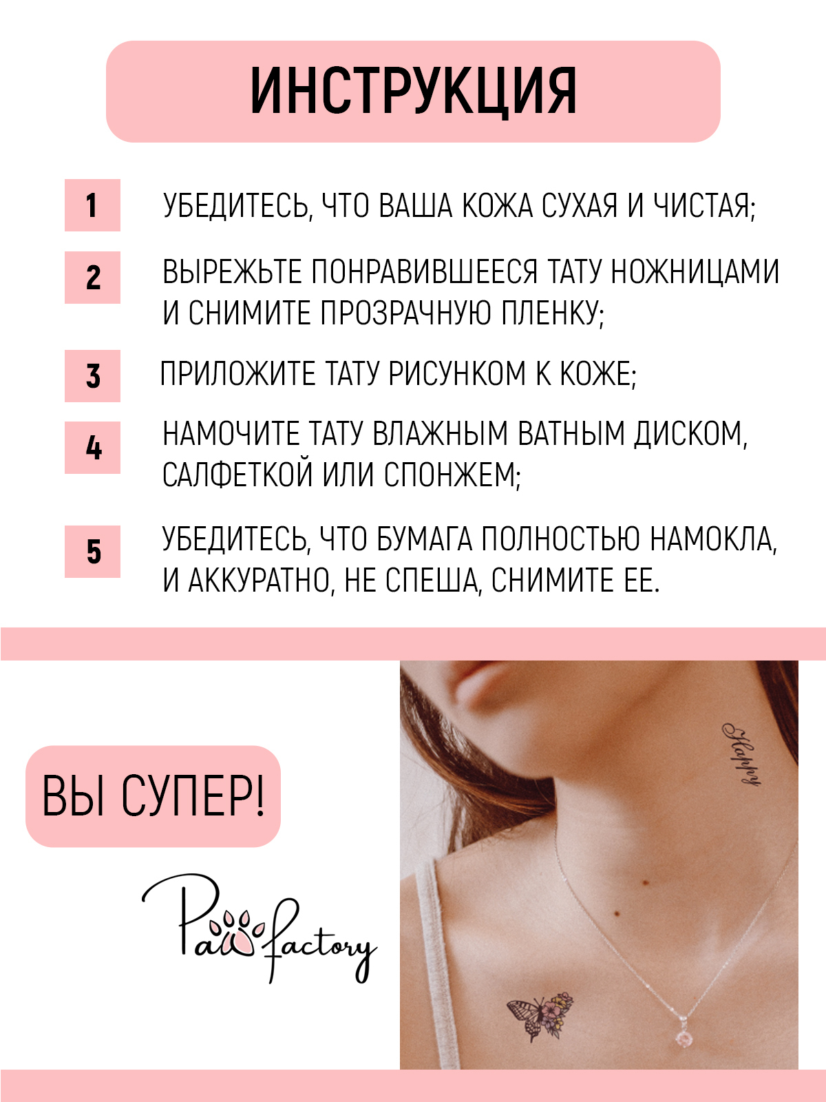 PAW FACTORY, Временные переводные татуировки для взрослых - Тату для тела, для девушек "Цветы"