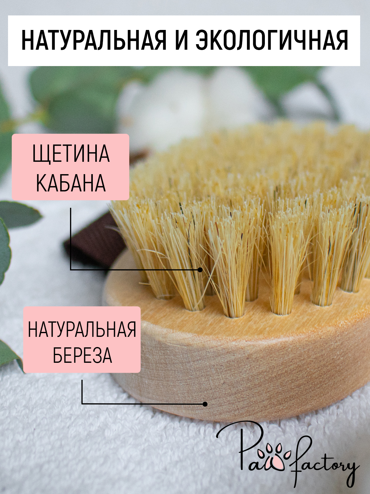PAW FACTORY, Массажная щетка для сухого массажа тела, с натуральной щетиной, 12 см