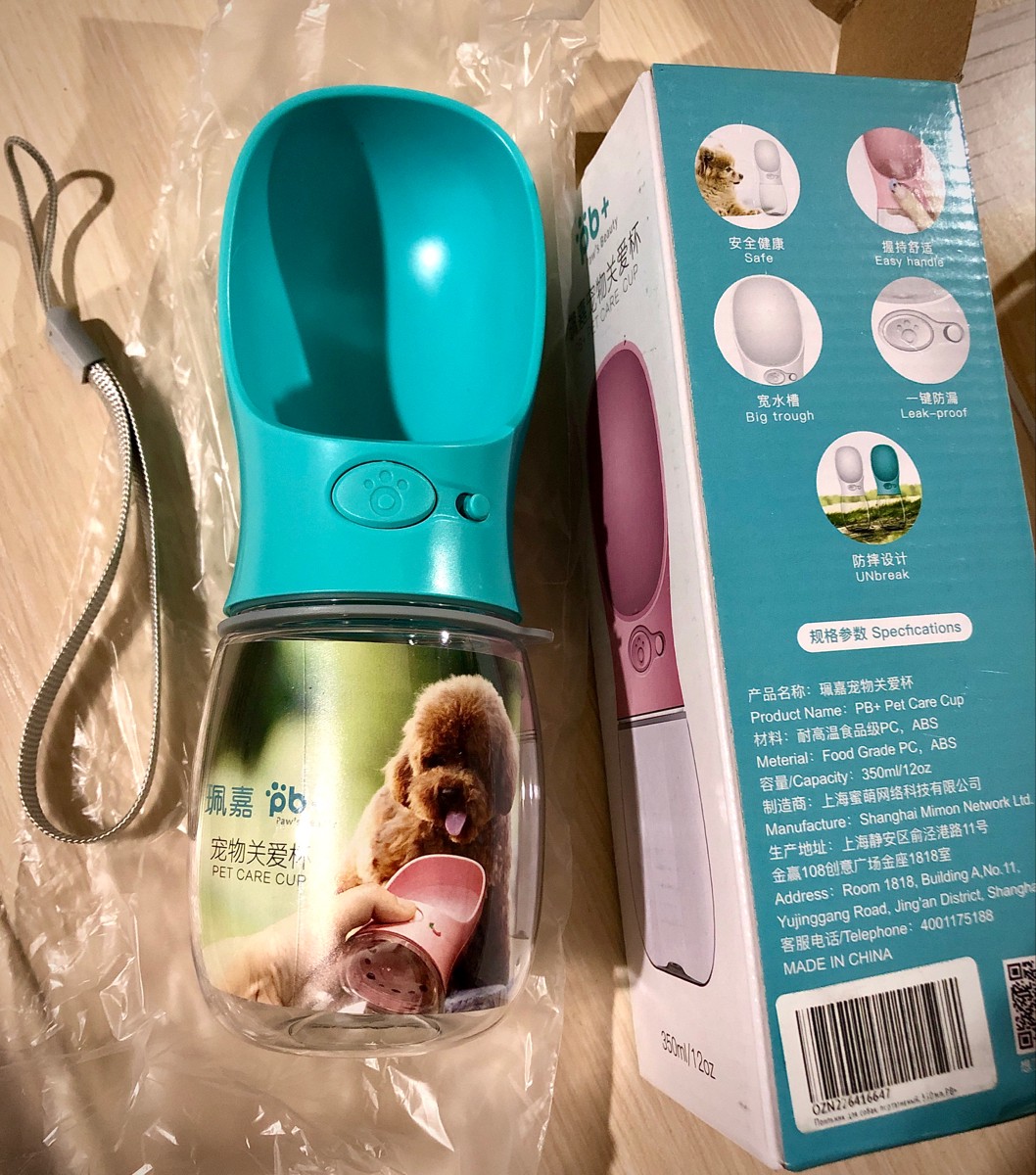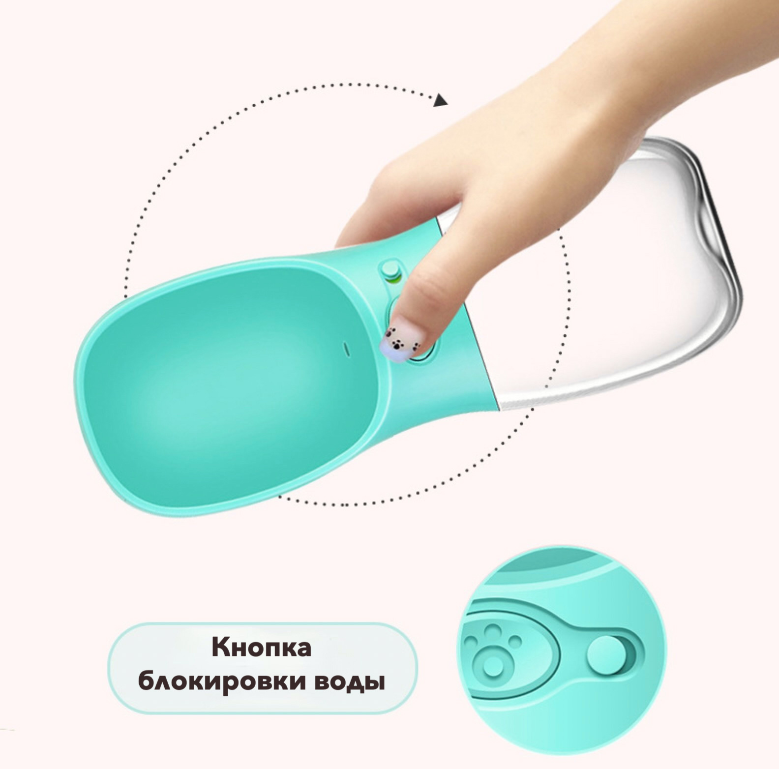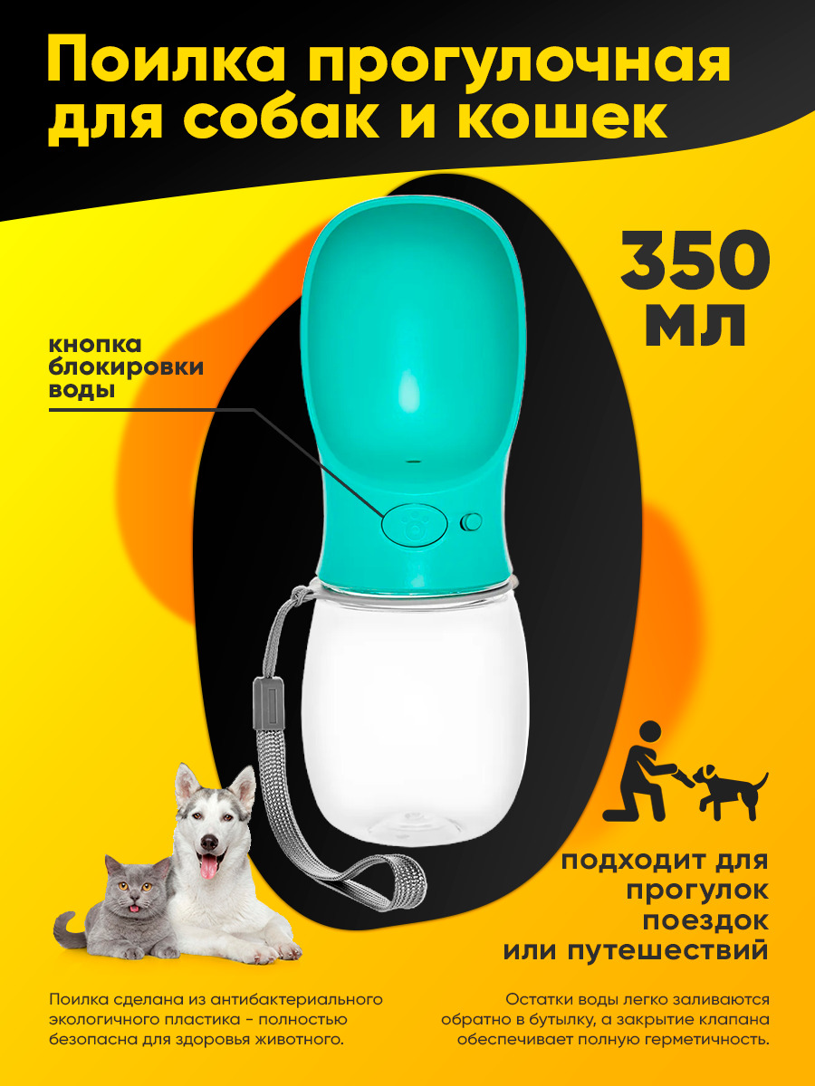 Поилка для собак прогулочная, переносная дорожная бутылка и миска для кошек, 350 мл, PB+, бирюзовая
