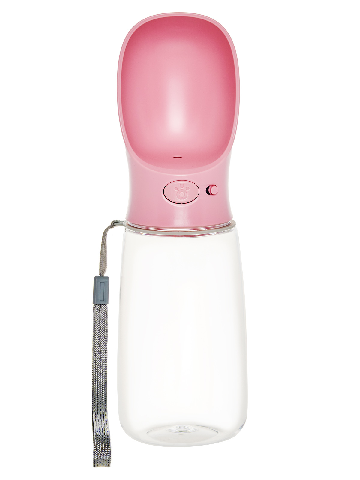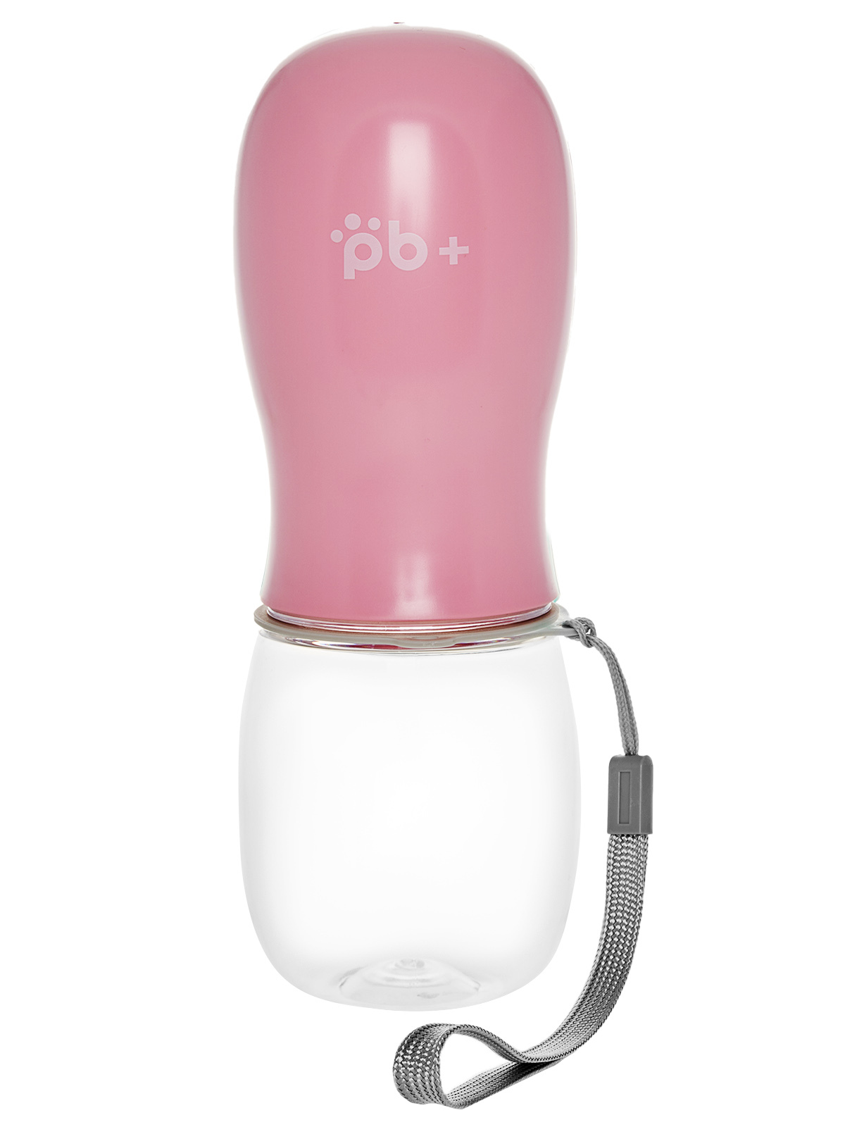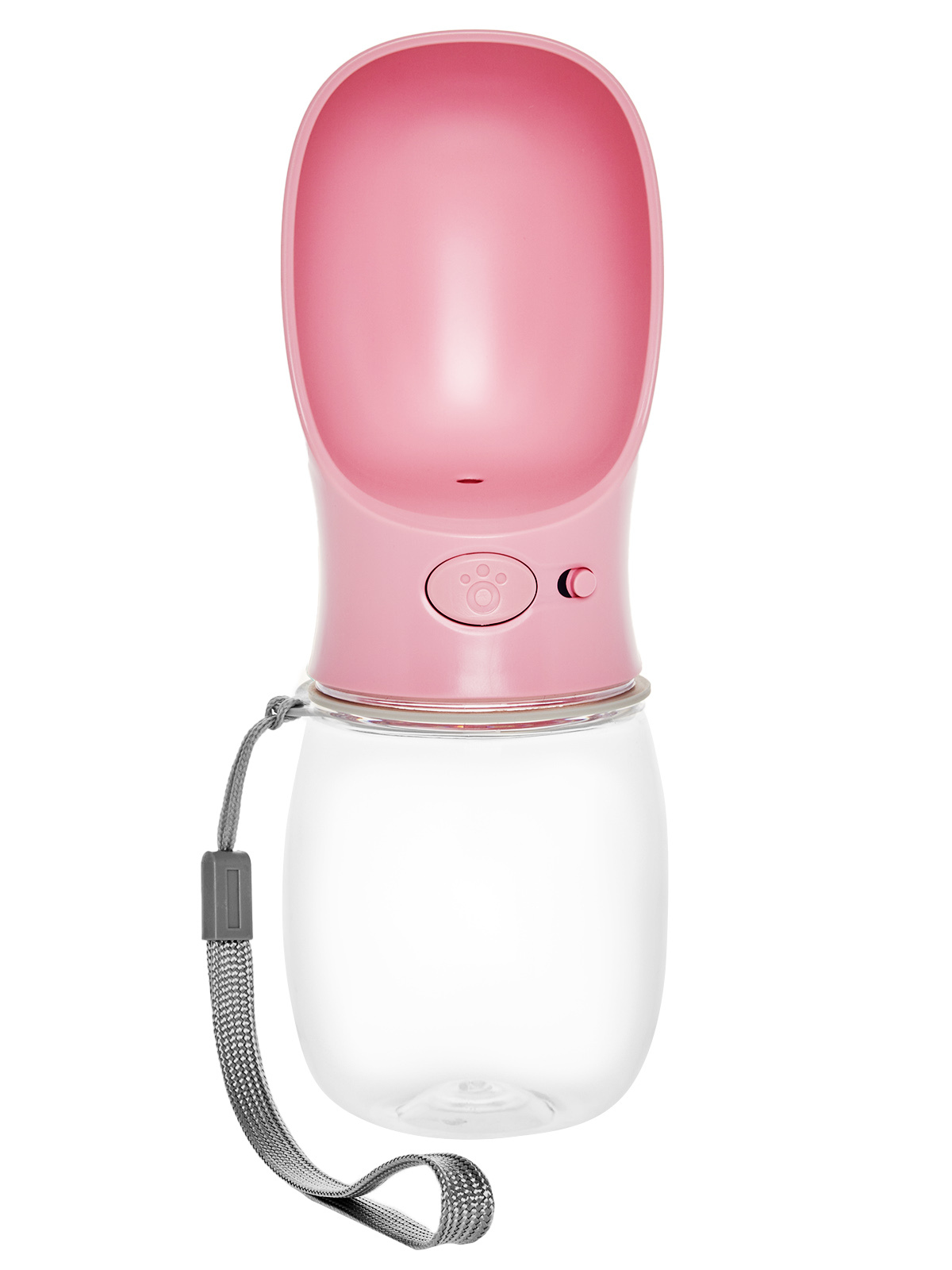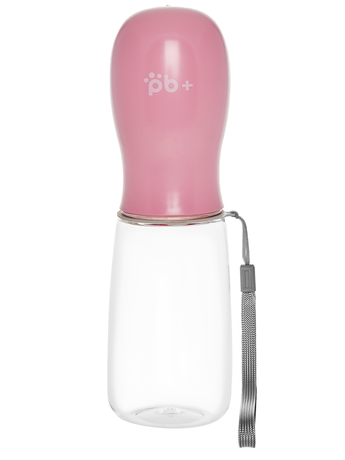 Поилка для собак прогулочная, переносная дорожная бутылка и миска для кошек, 350 мл, PB+, розовая