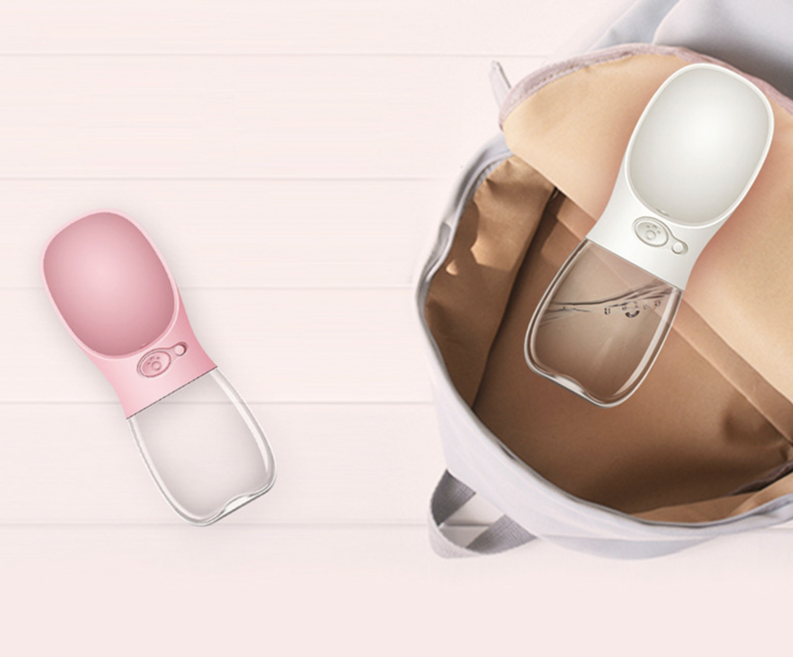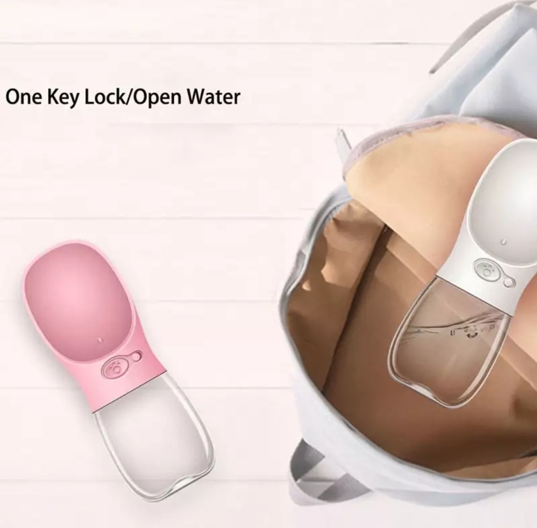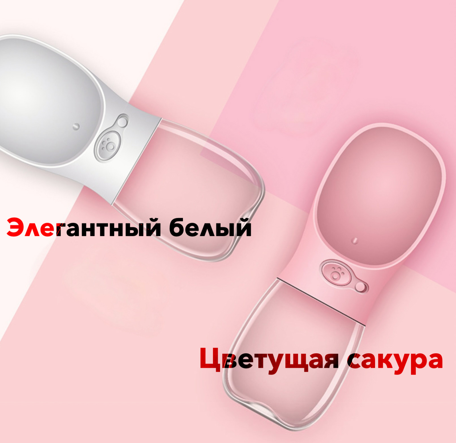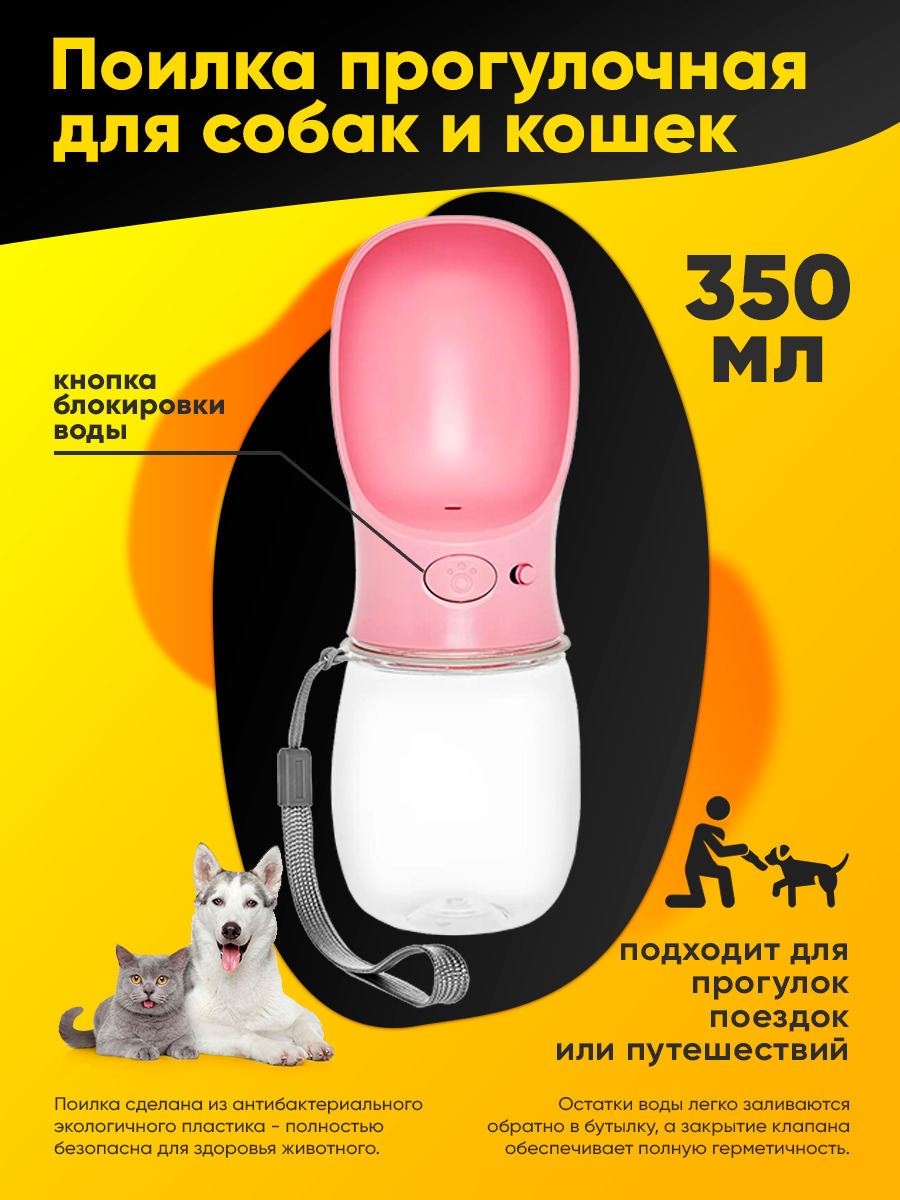 Поилка для собак прогулочная, переносная дорожная бутылка и миска для кошек, 350 мл, PB+, розовая