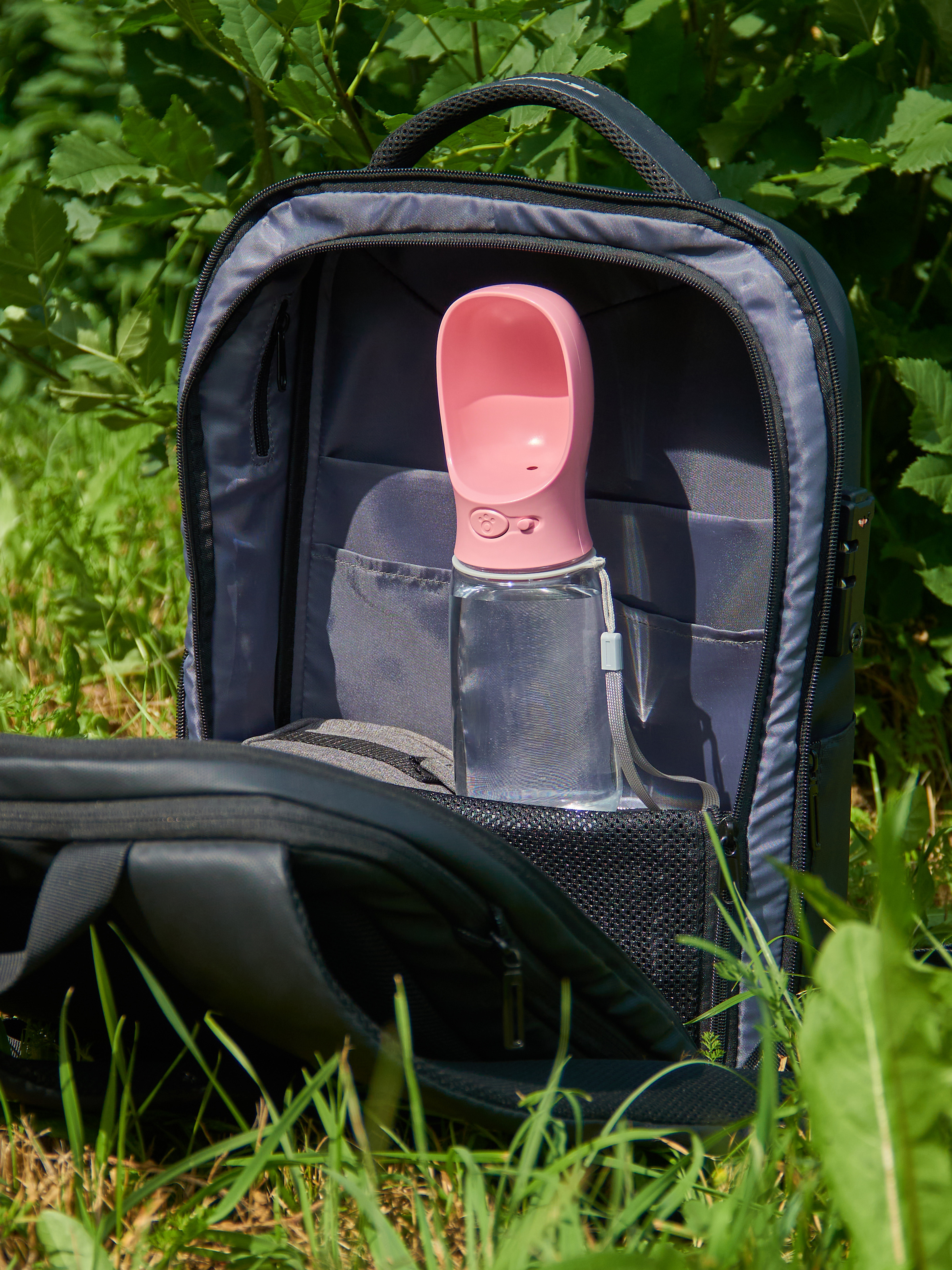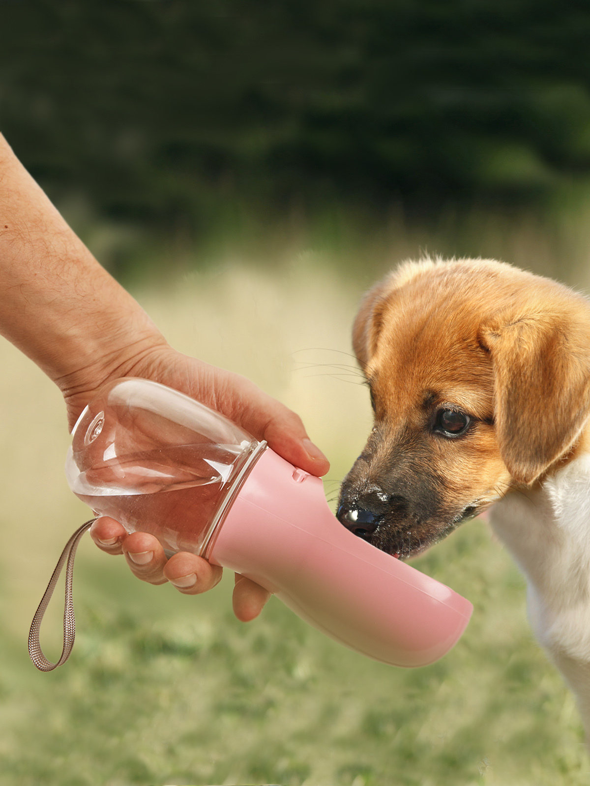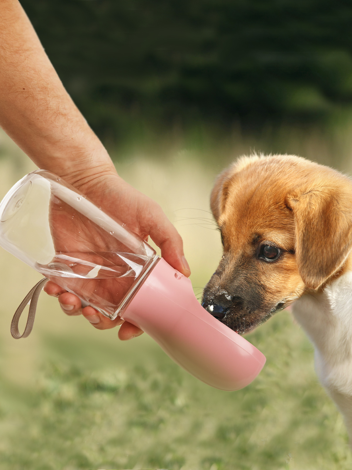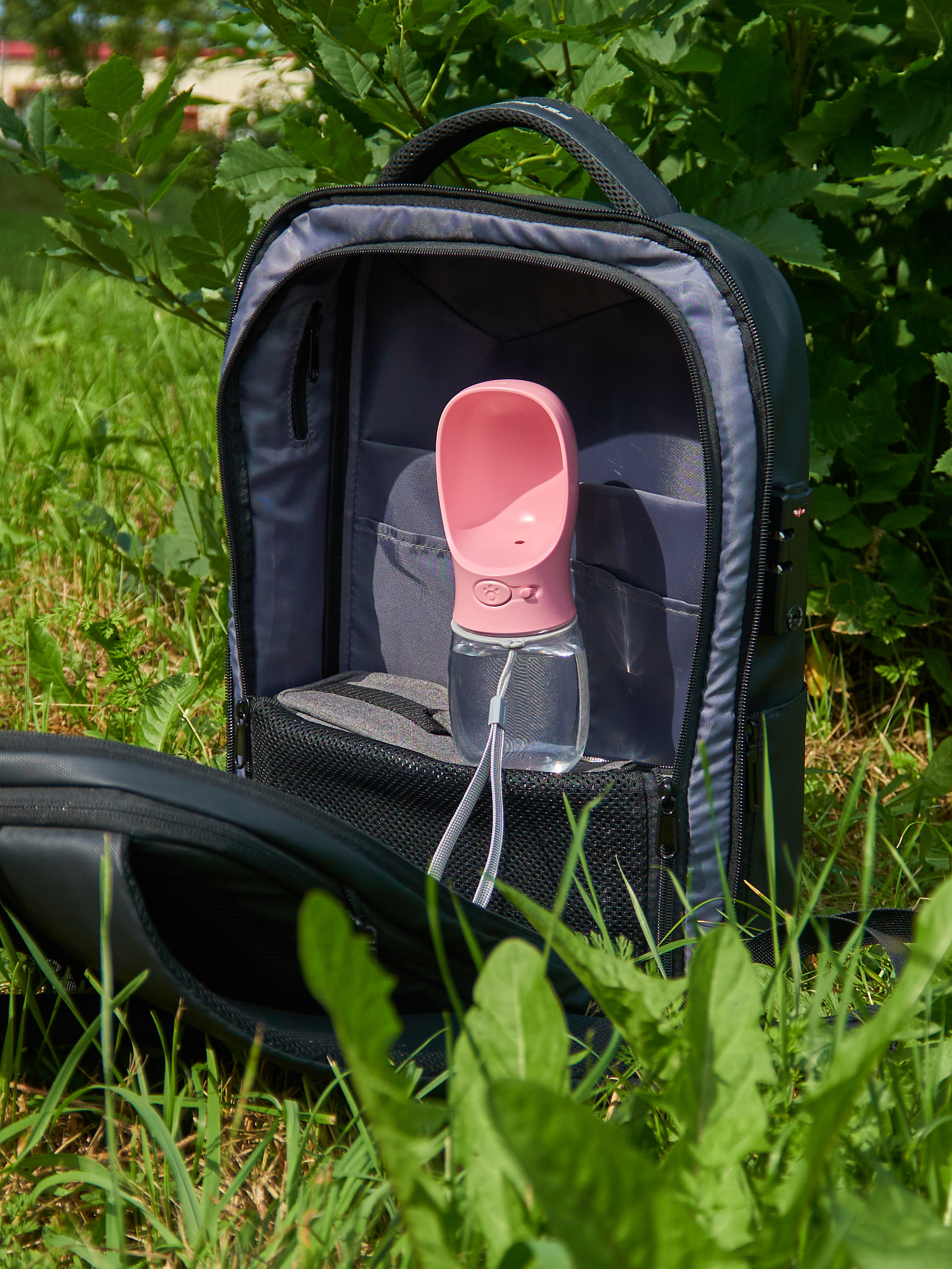 Поилка для собак прогулочная, переносная дорожная бутылка и миска для кошек, 350 мл, PB+, розовая