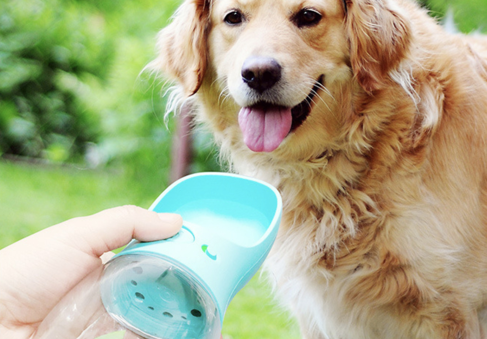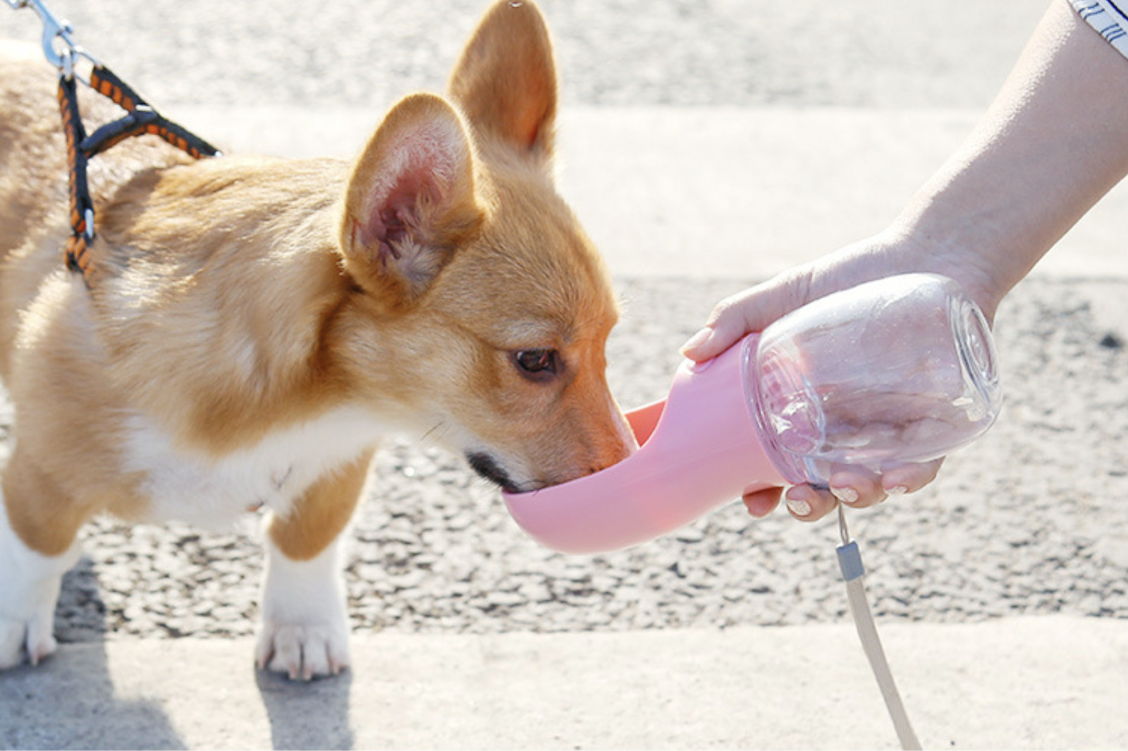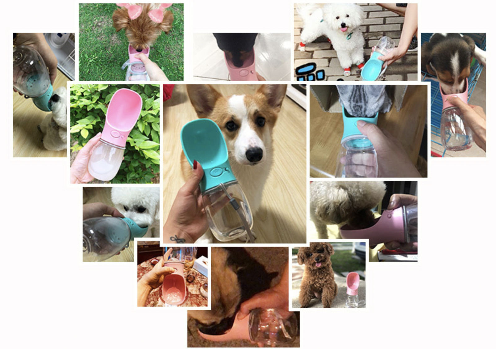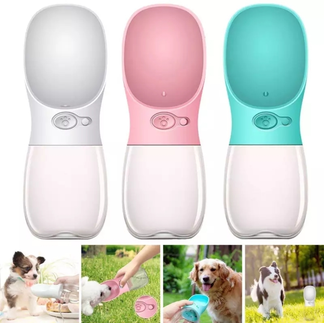 Поилка для собак прогулочная, переносная дорожная бутылка и миска для кошек, 350 мл, PB+, розовая