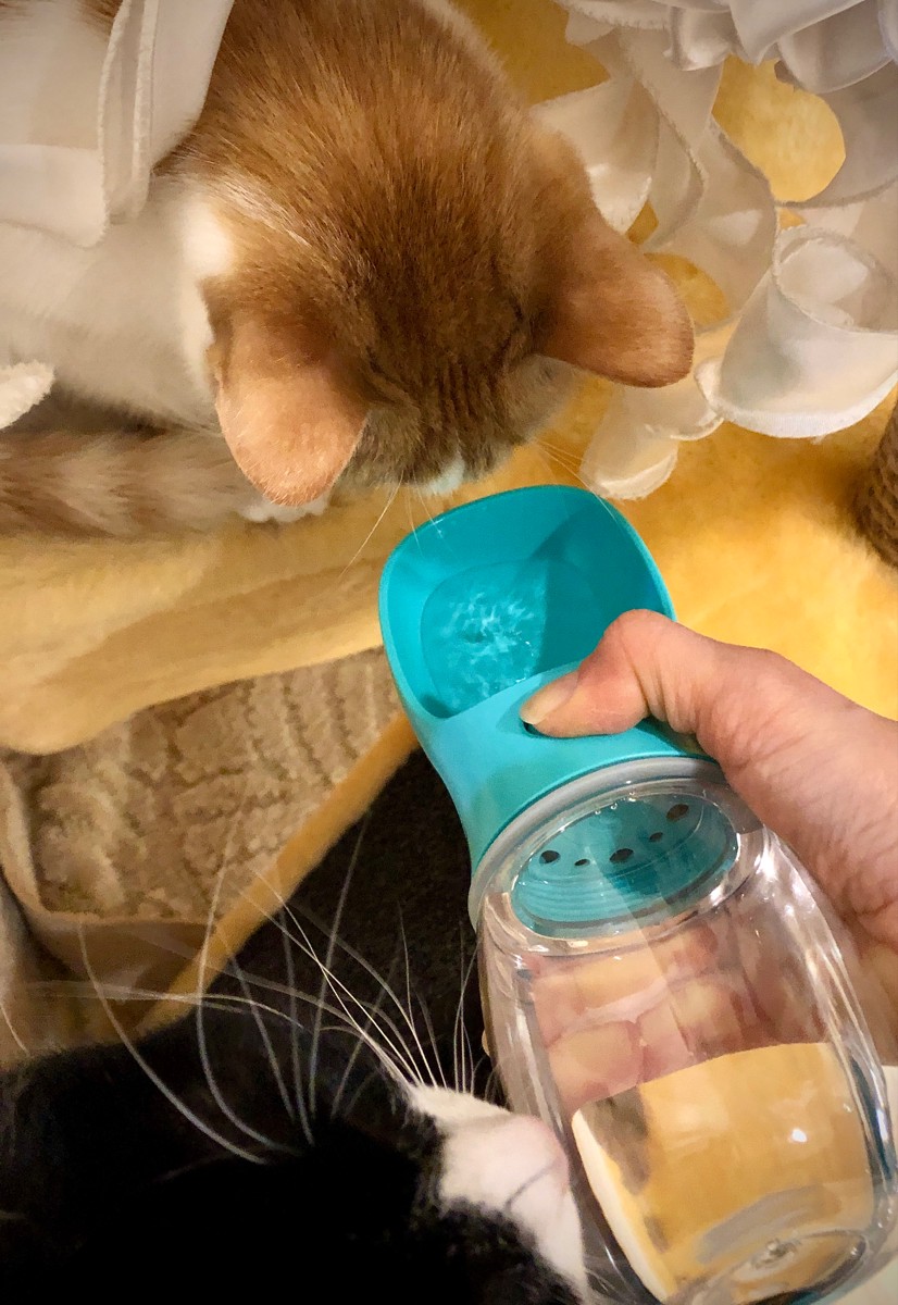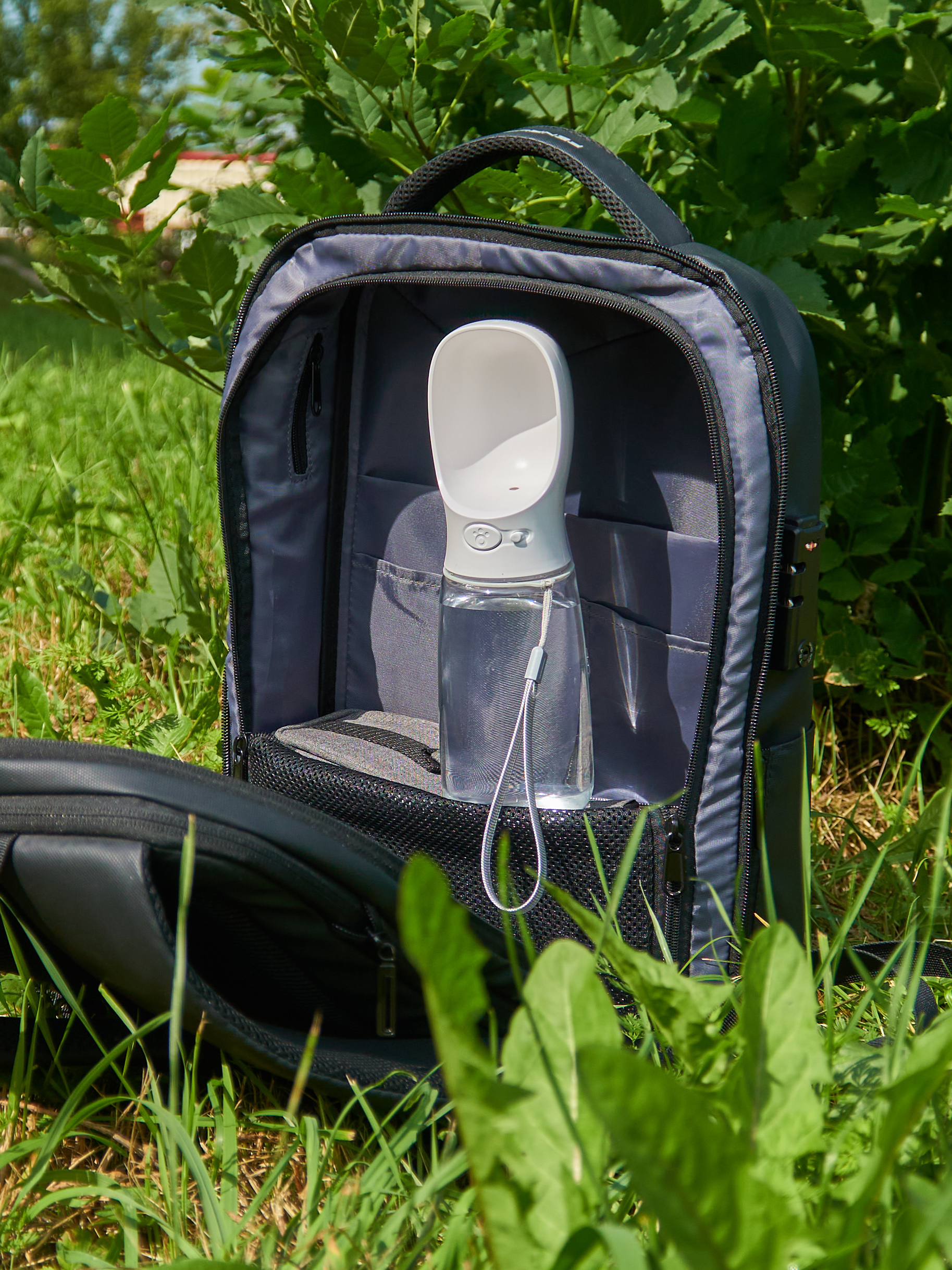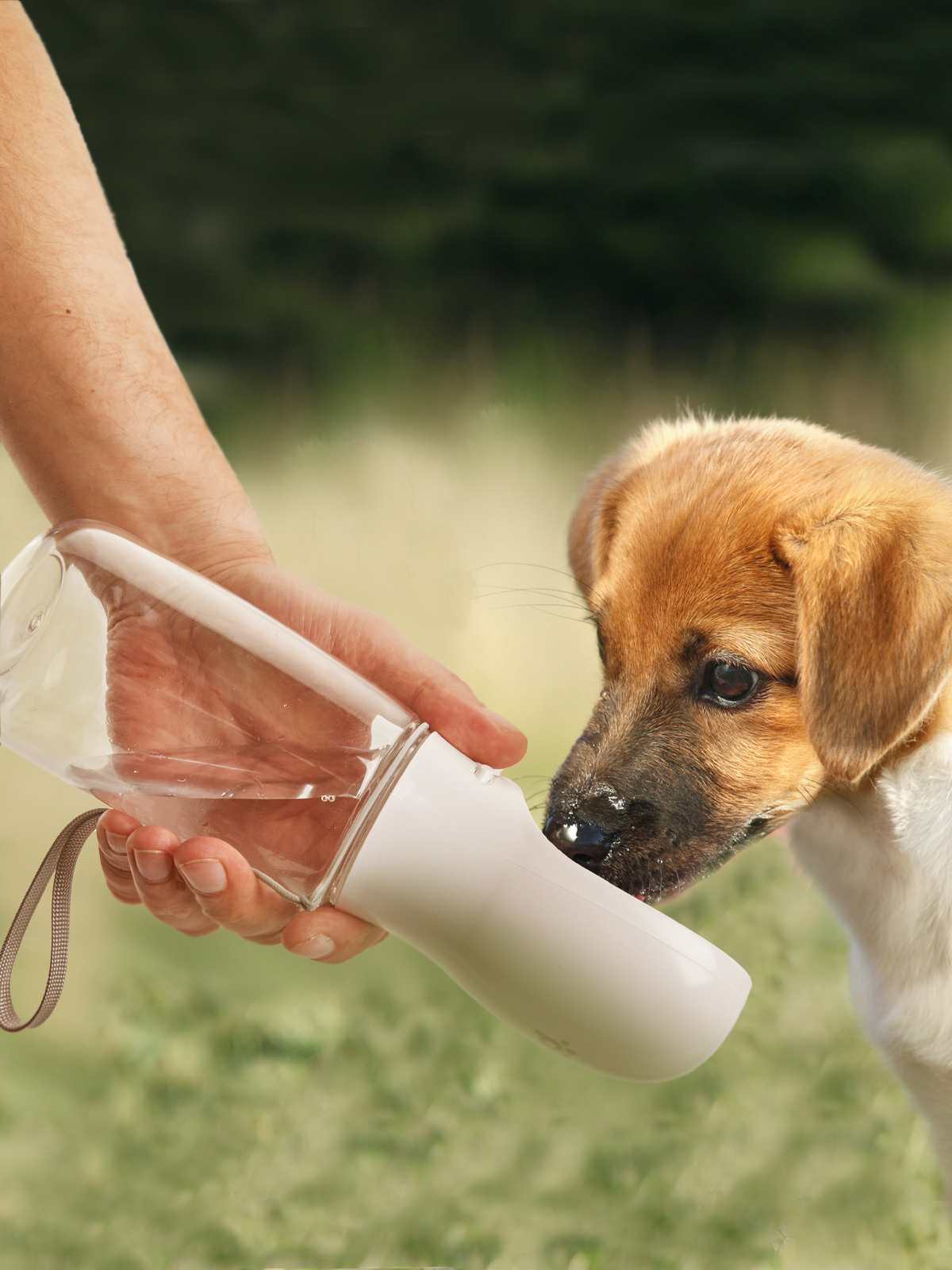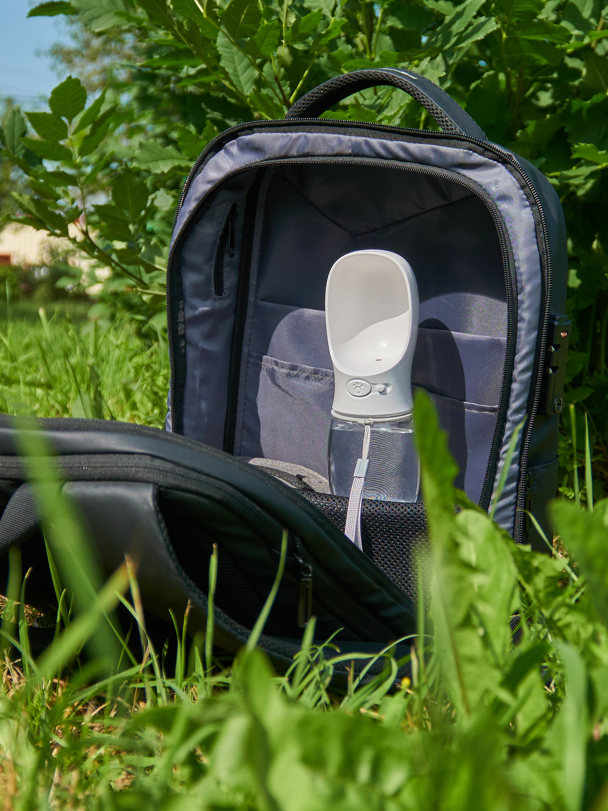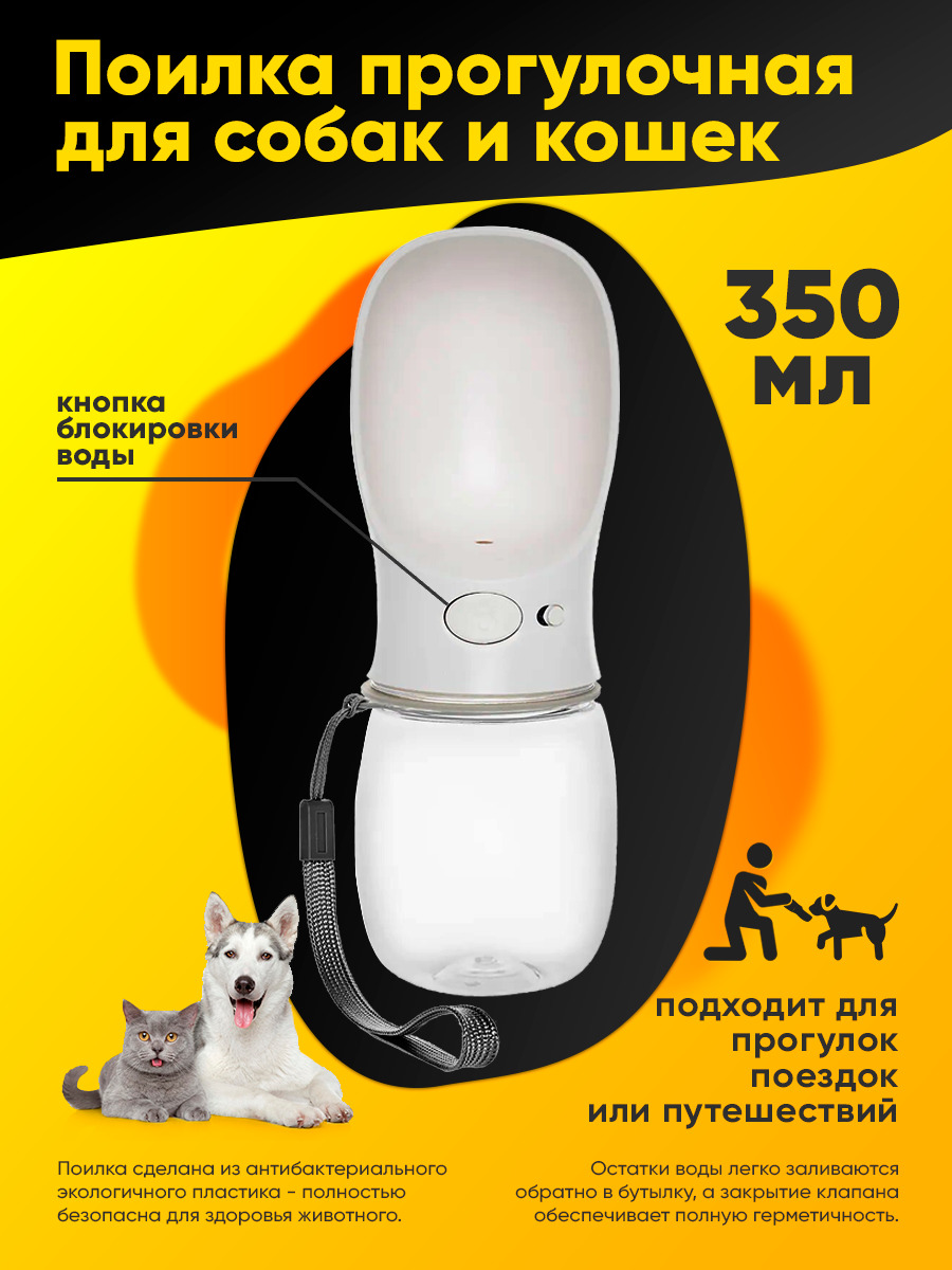 Поилка для собак прогулочная, переносная дорожная бутылка и миска для кошек, 350 мл, PB+, белая