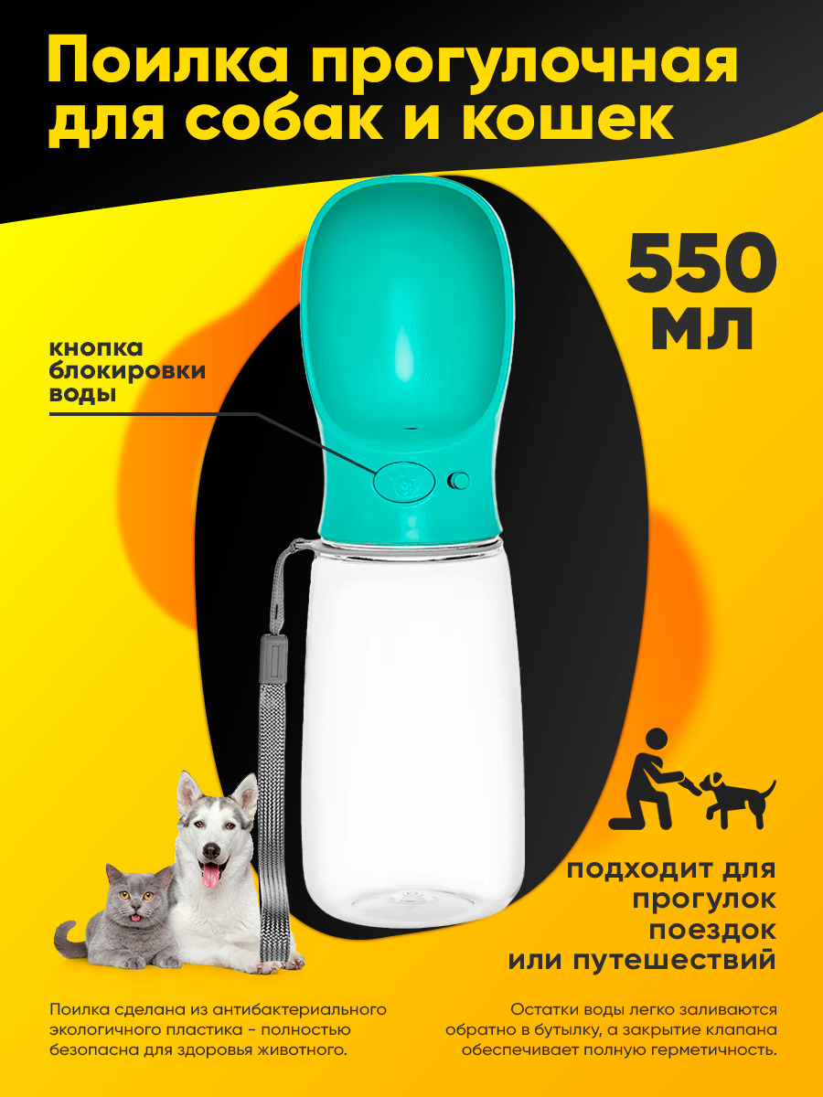 Поилка для собак прогулочная, переносная дорожная бутылка и миска для кошек, 550 мл, PB+, бирюзовая